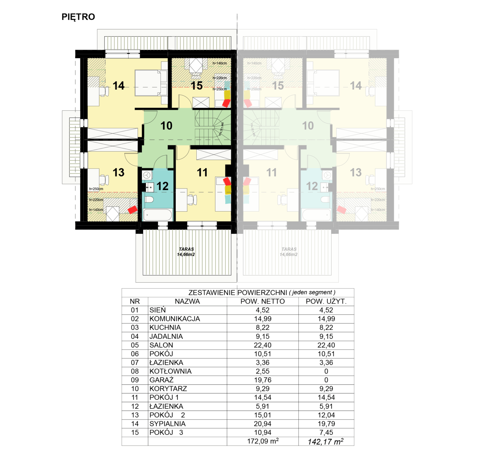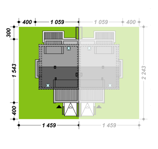 Projekt dostępny w wersji zabudowy bliźniaczej i jako budynek jednorodzinny dwulokalowy TK90D2, a także w wersji zabudowy szeregowej TK90S.