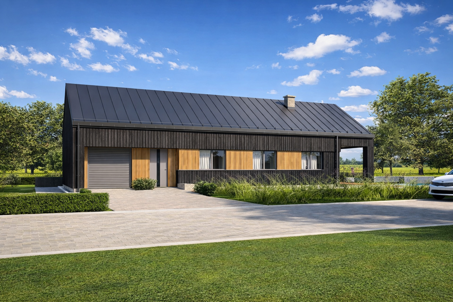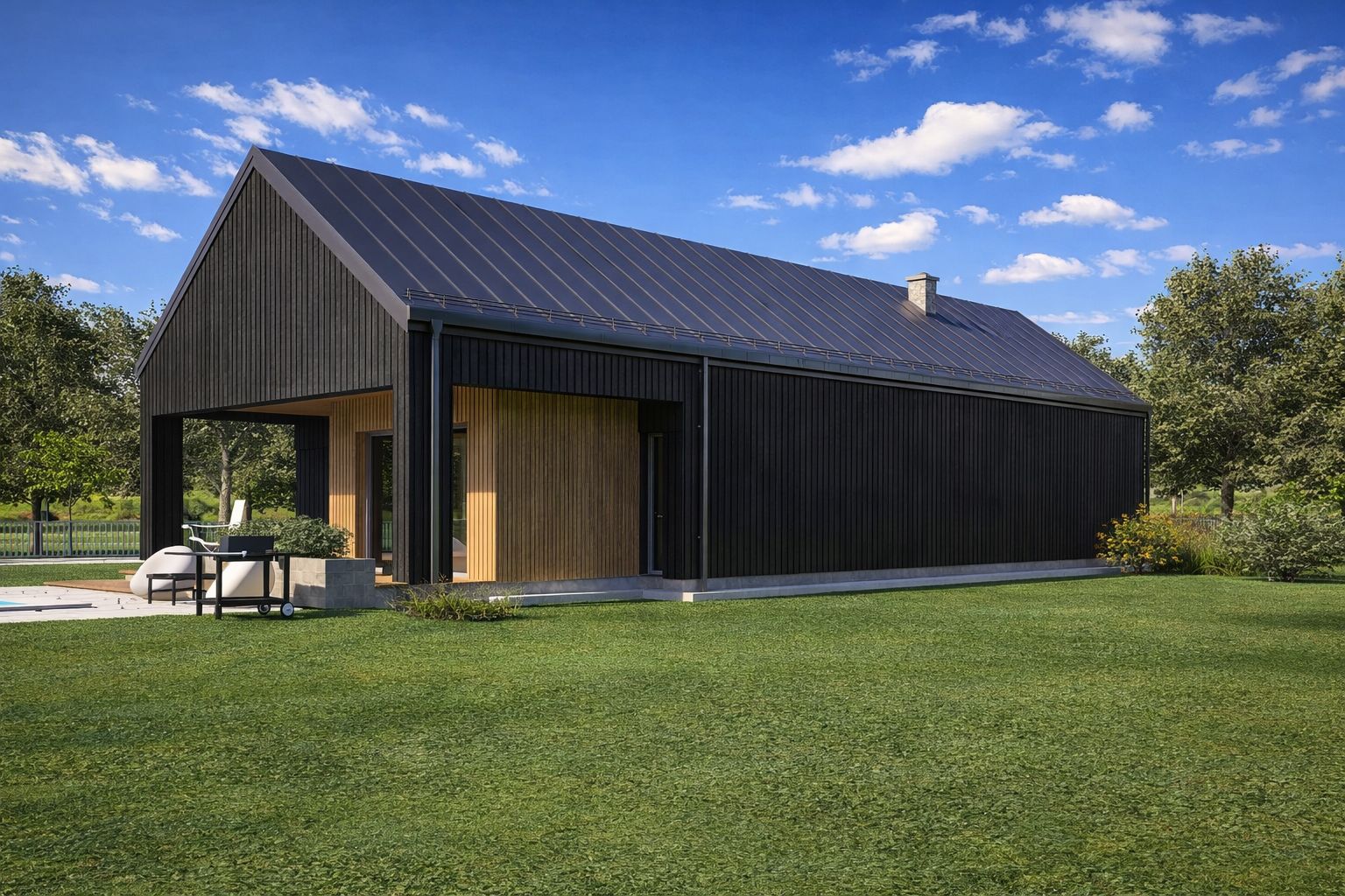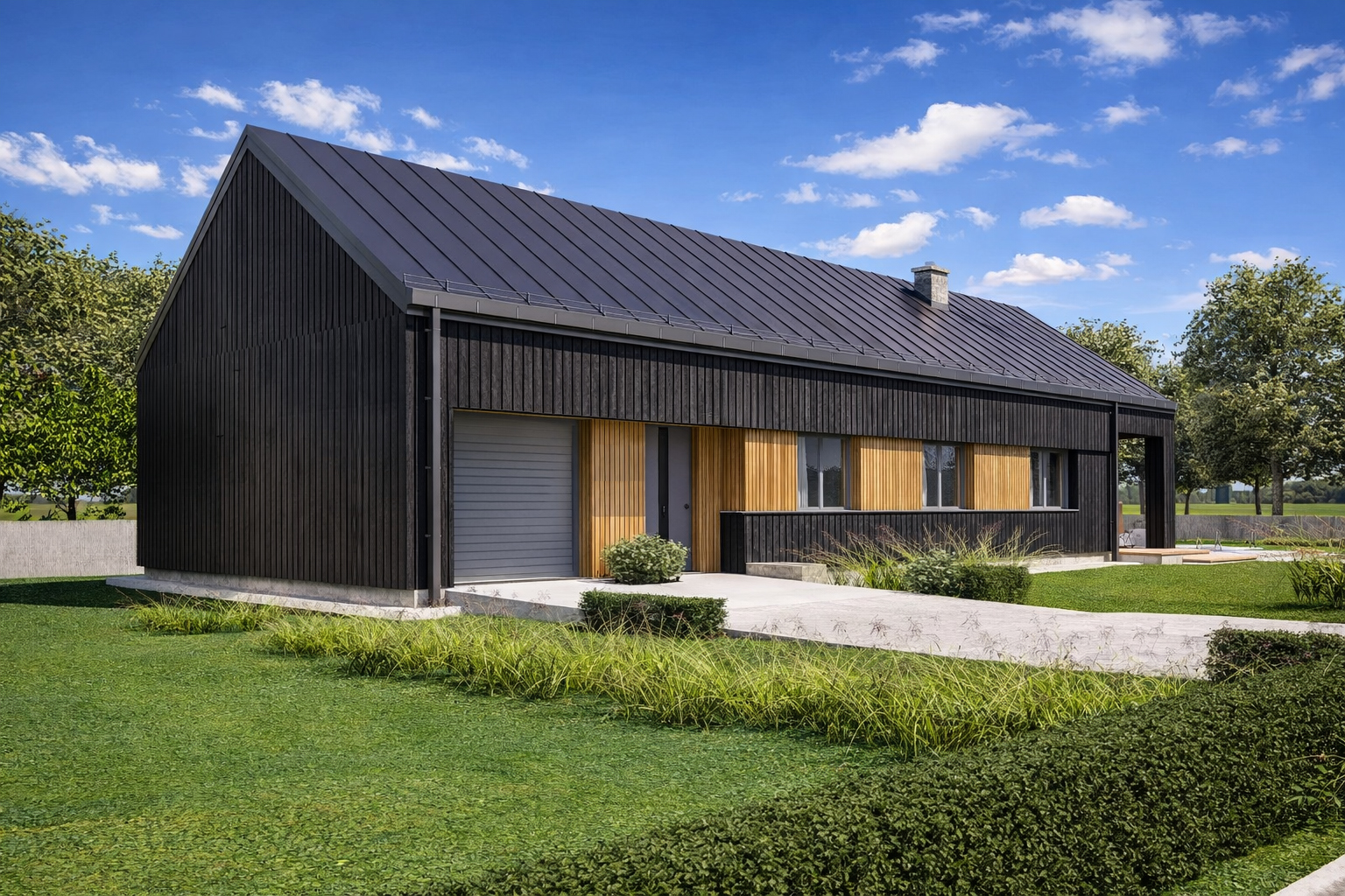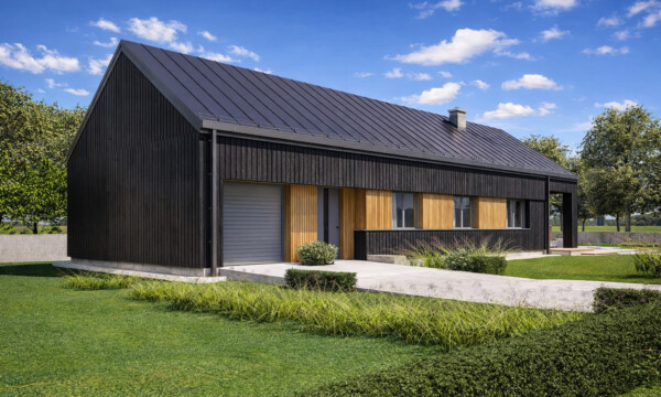 Architeka 50sd to idealny dom na wąską działkę. Styl nowoczesnej stodoły i prosta konstrukcja drewniana gwarantują niskie koszty budowy i eksploatacji. Zwarta bryła budynku oraz stosunkowo nieduże przeszklenia znacznie ograniczą straty ciepła.
