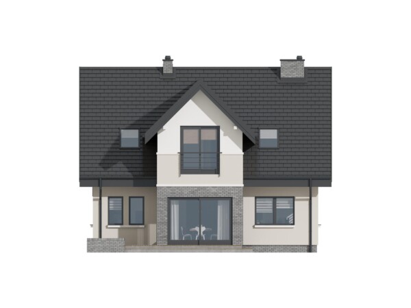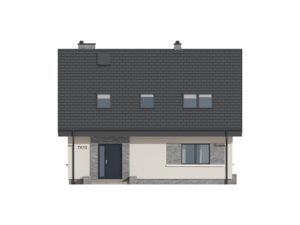 TK10 to skromny dom z poddaszem użytkowym zaprojektowany dla pięcio lub sześcioosobowej rodziny. Atutem domu jest mała powierzchnia zabudowy i maksymalnie wykorzystana powierzchnia użytkowa. Na parterze znajdziemy kuchnię i salon z wygodną jadalnią otwartą na ogród, pokój, łazienkę i przestronną sień, w której zmieścimy wygodną szafę. Poddasze to trzy pokoje, sypialnia bez skosów i duża łazienka. Prosta bryła i konstrukcja budynku wpłynie na szybką i łatwą, a przede wszystkim tanią realizację budowy. W projekcie zastosowano materiały i urządzenia techniczne dzięki którym dom będzie wysoceenergooszczędny.