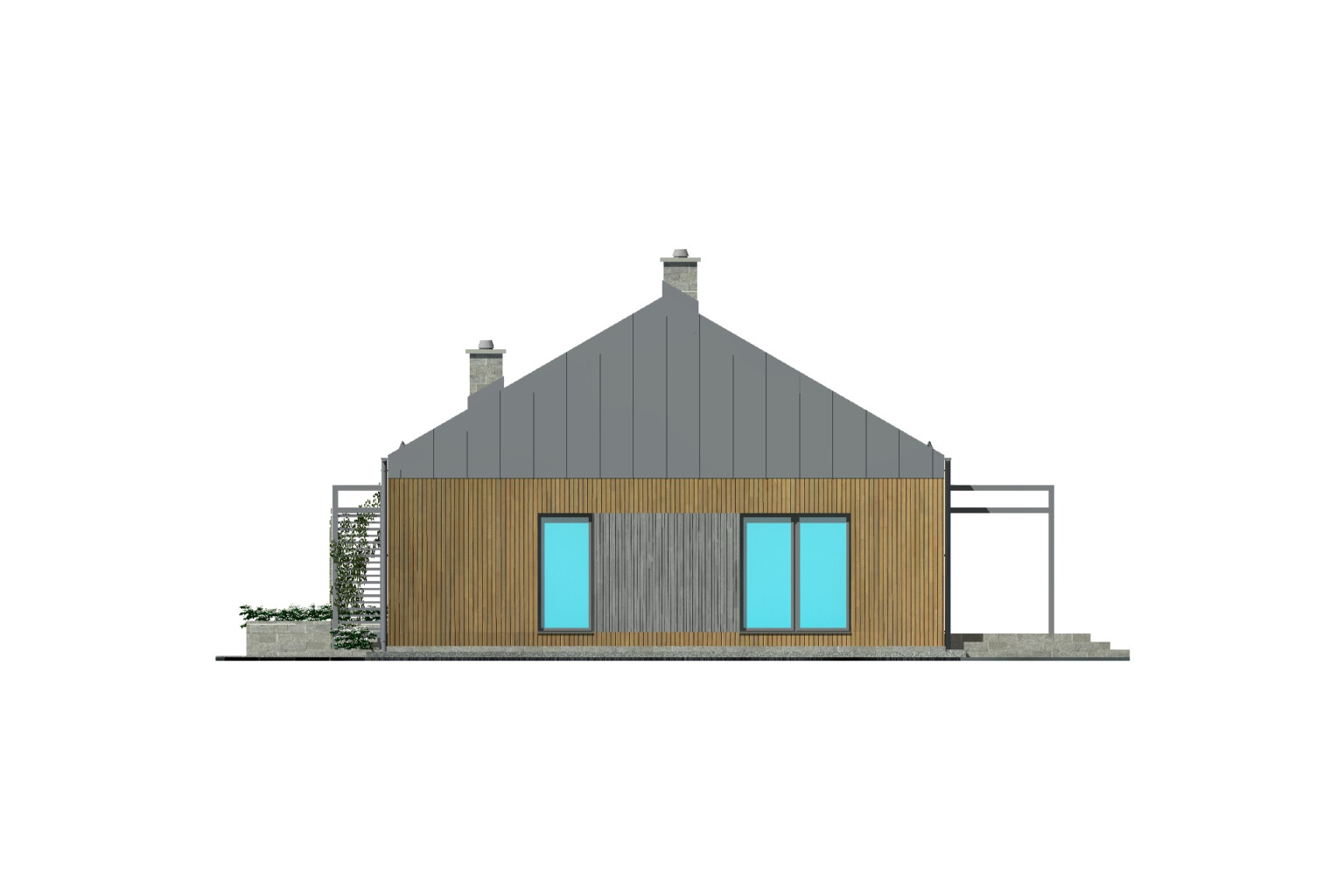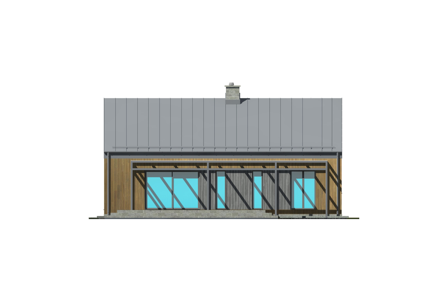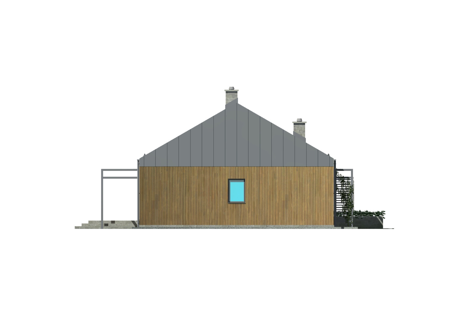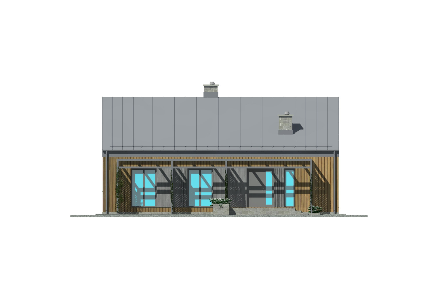 Prostota, wygoda i ekonomia użytkowania to główne cechy jakie ma spełnić ten parterowy dom. Na 106 metrach kwadratowych zaprojektowaliśmy wygodny salon z dużą jadalnią, sypialnię z odrębną garderobą, dwie łazienki, dwa wygodne pokoje i kuchnię która może być otwarta lub zamknięta w zależności od potrzeb. Pomieszczenie techniczne pomieści wszelkie niezbędne urządzenia grzewcze i techniczne dla obsługi domu. Bryła budynku oraz zastosowane rozwiązania konstrukcyjne zapewnią niskie koszty budowy. TK103 jest domem w konstrukcji drewnianej szkieletowej.