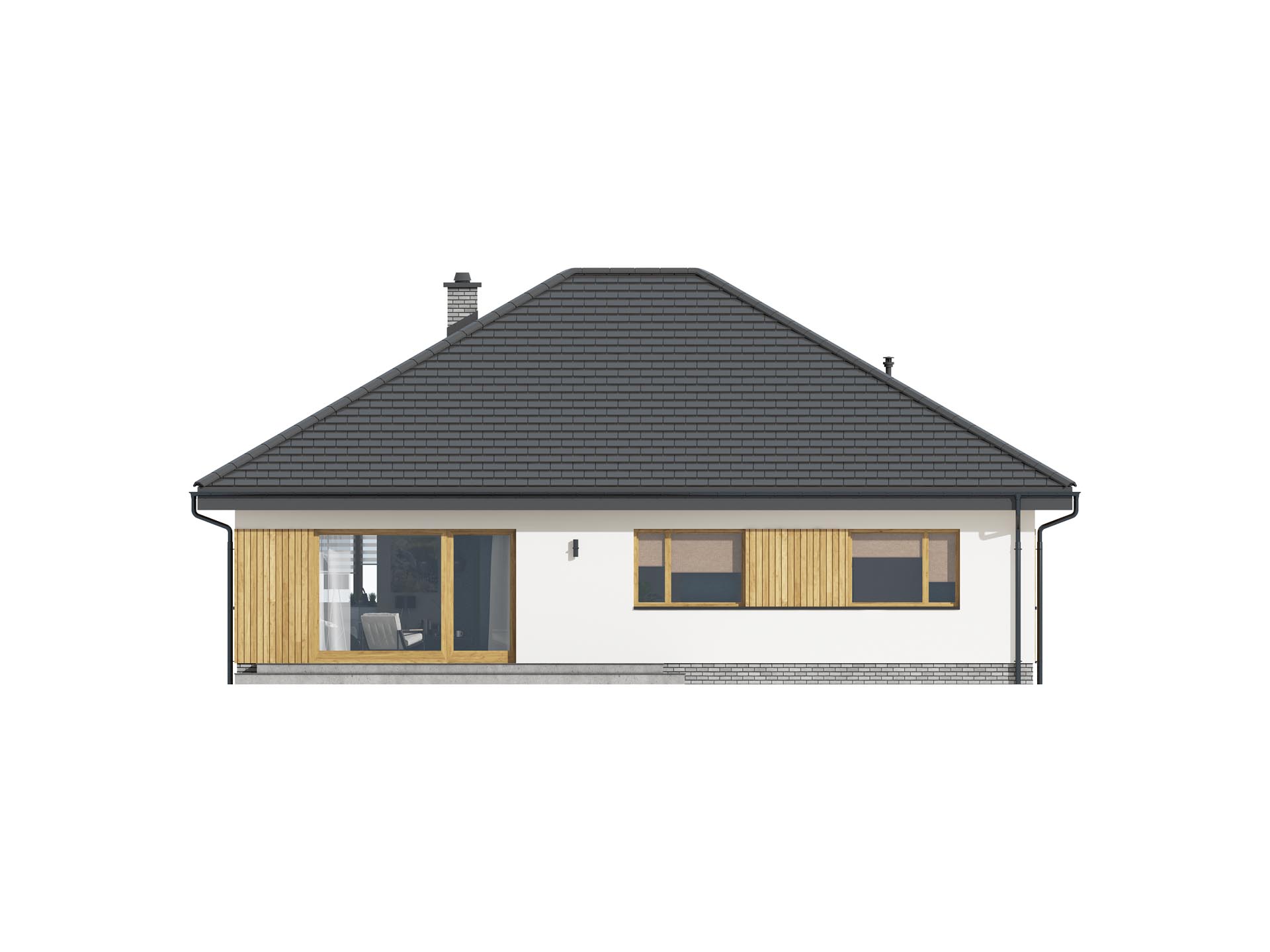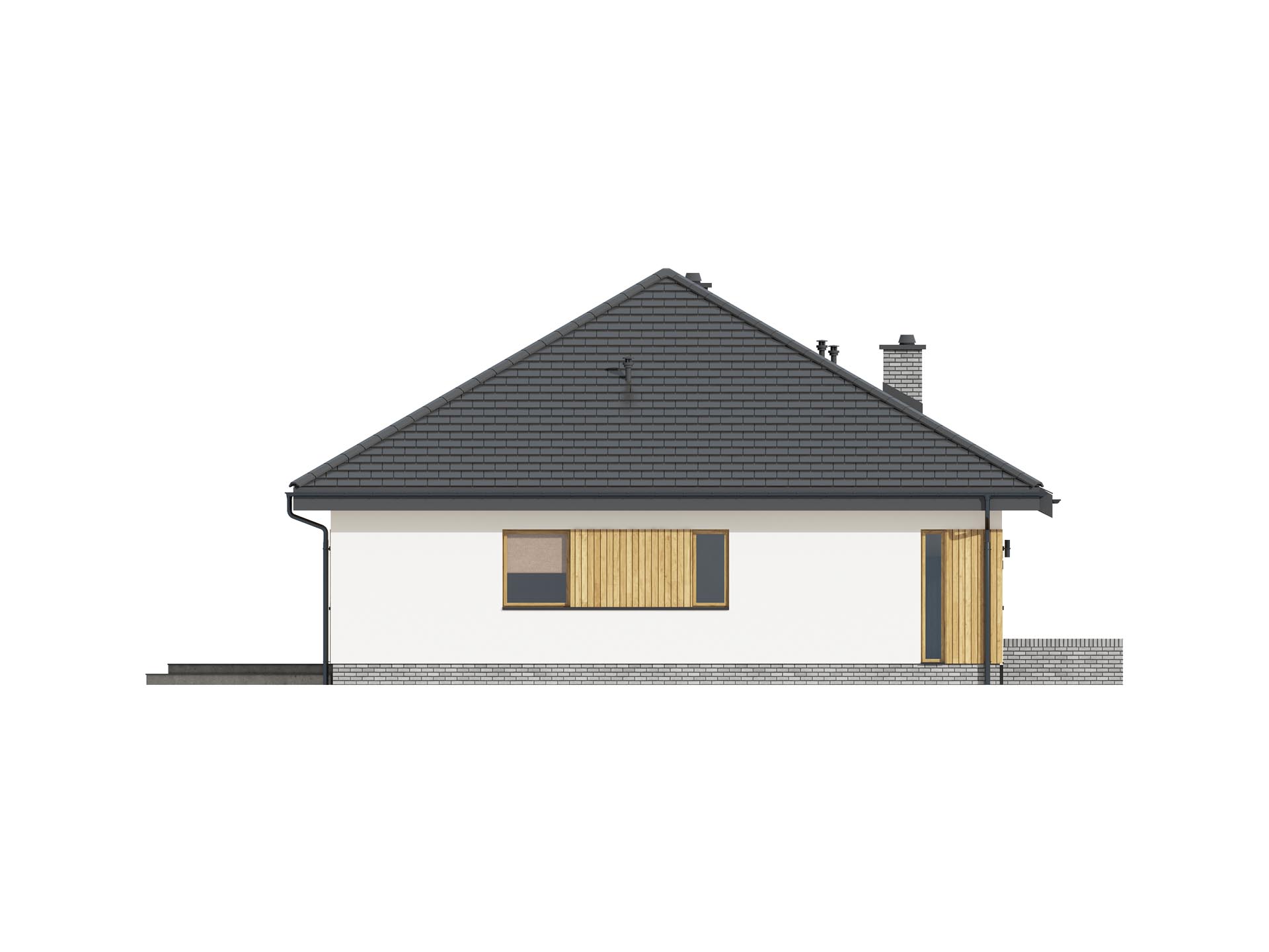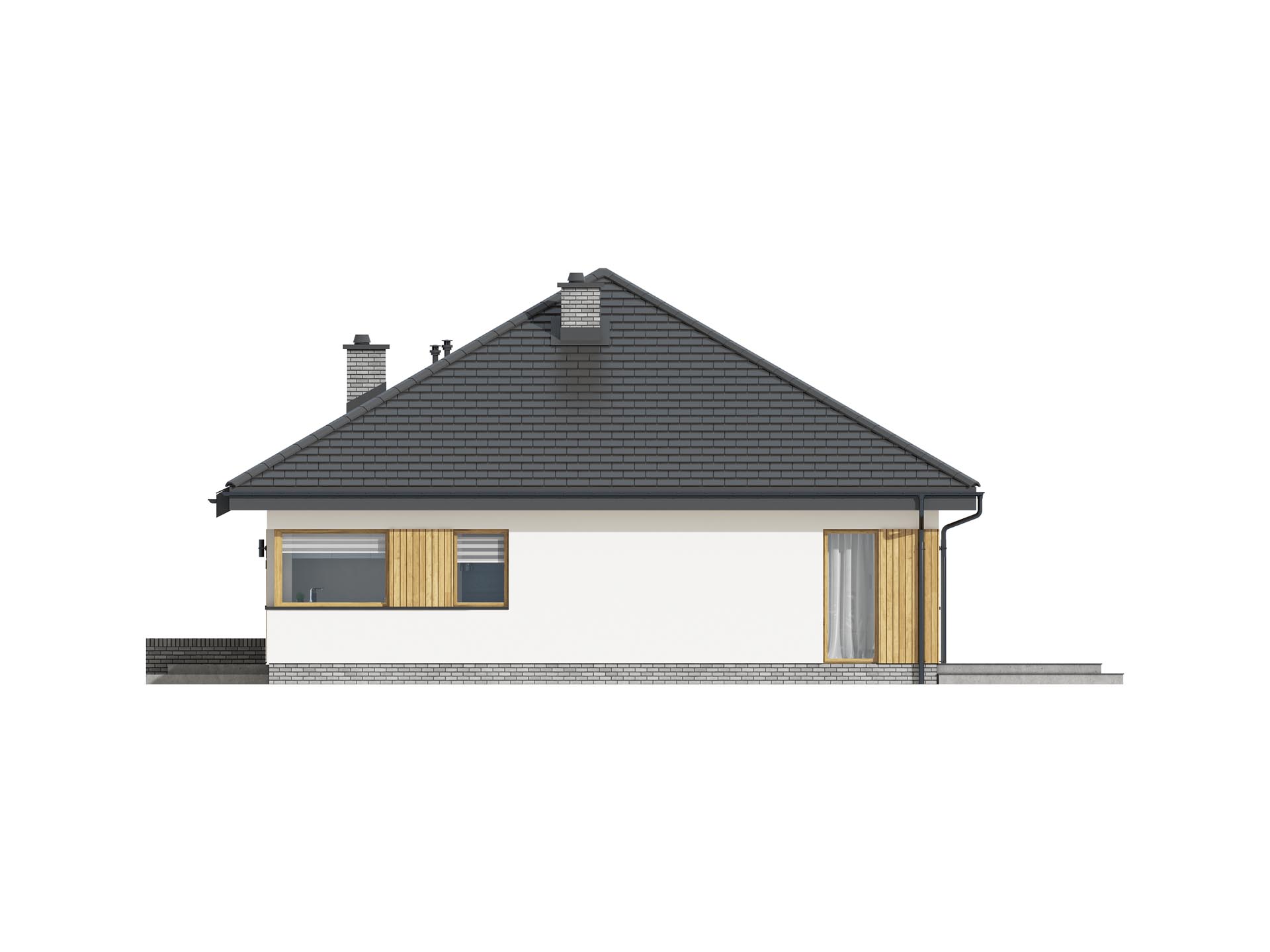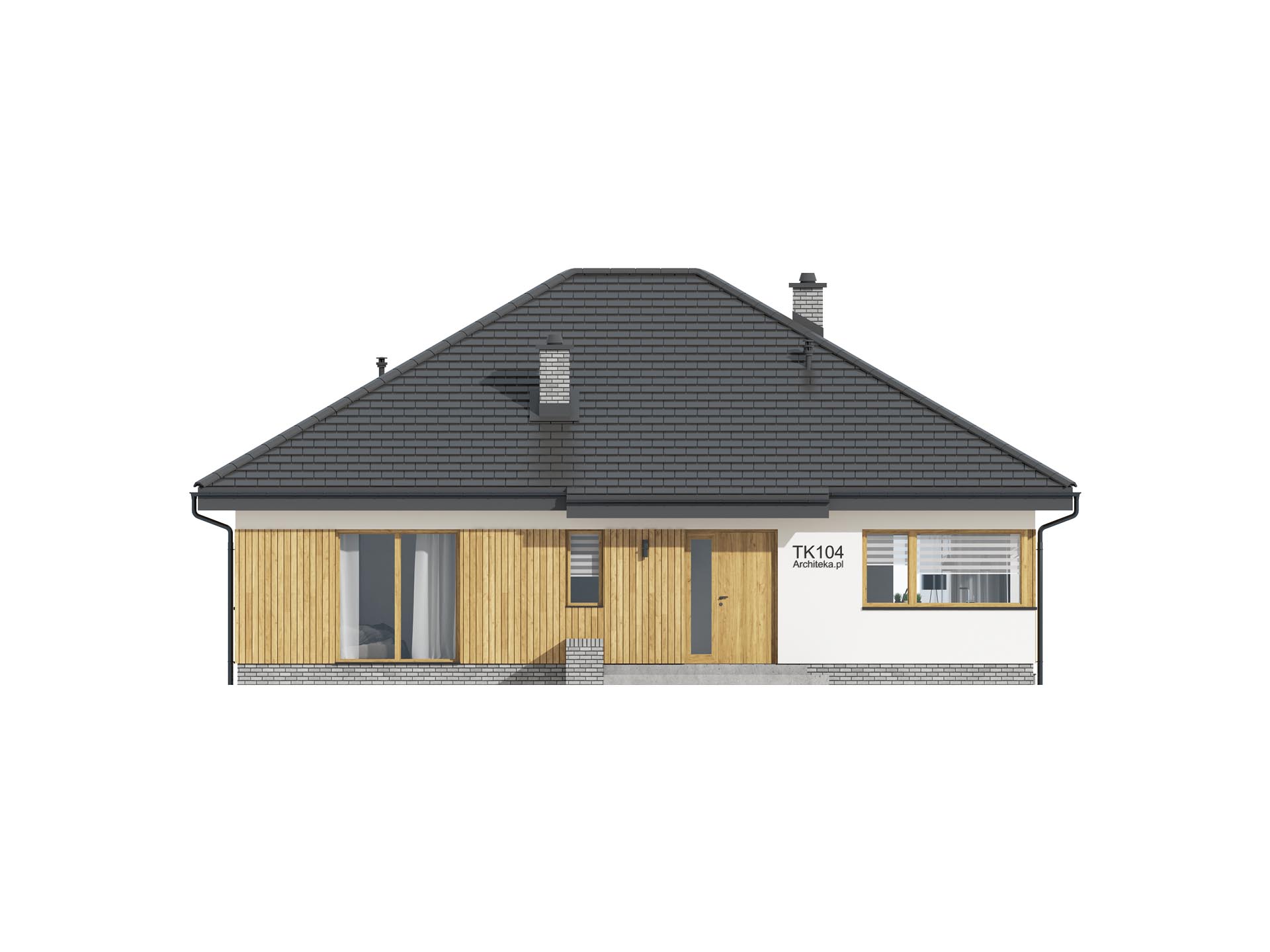 Przytulny i wygodny dom parterowy, w którym funkcjonalny układ pomieszczeń pozwoli wygodnie mieszkać czteroosobowej rodzinie. Prosta bryła budynku oraz zastosowane rozwiązania konstrukcyjne i techniczne zapewniają niskie koszty budowy i użytkowania. Znajdziemy tu trzy wygodne pokoje, dwie łazienki i wygodną otwartą przestrzeń dzienną z kominkiem w salonie i jadalni. Wygodna kuchnia z przestronnym oknem narożnym nie tylko pomieści wszelkie konieczne sprzęty ale zapewni także doskonały widok na ogród. TK104 jest domem w konstrukcji drewnianej szkieletowej.