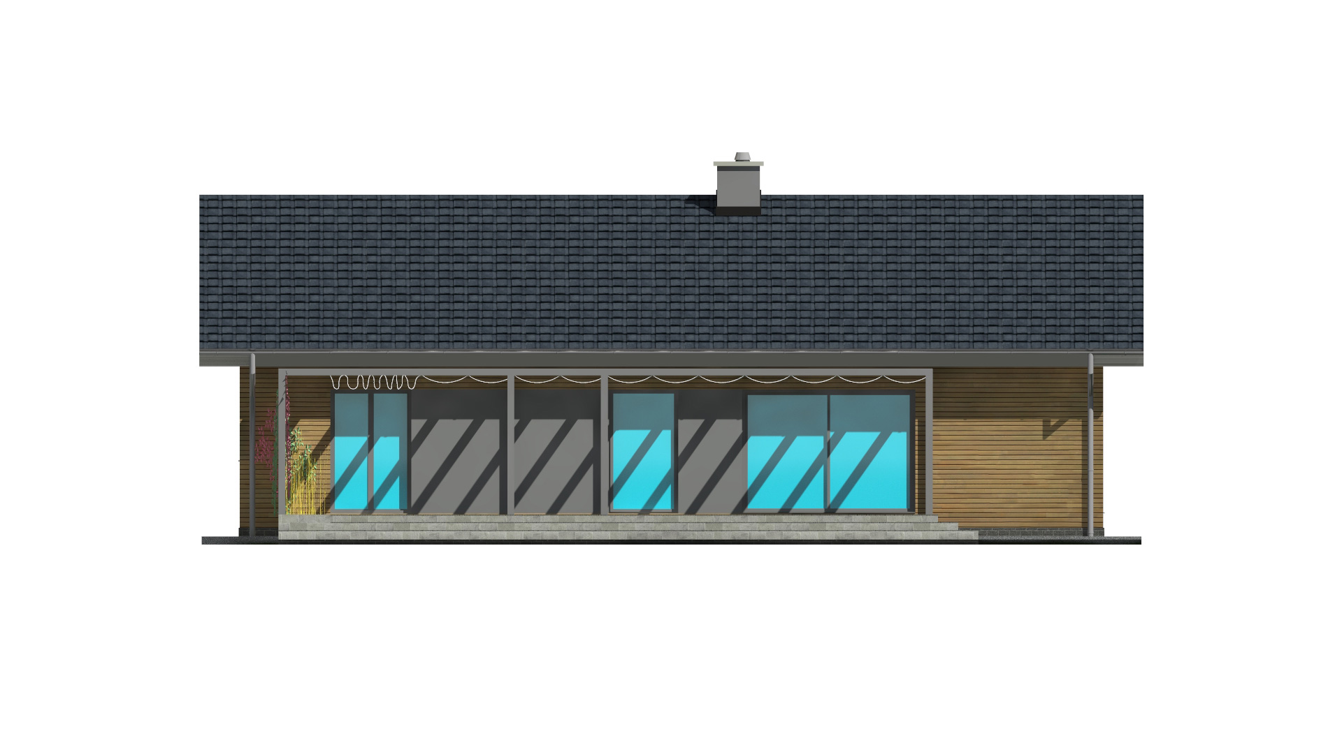 TK105l to projekt domu parterowego o zwartej bryle i funkcjonalnej przestrzeni wewnętrznej. Prosta konstrukcja budynku zapewnia niskie koszty realizacji i użytkowania budynku. W układzie funkcjonalnym domu istnieje wyraźny podział na część dzienną i nocną, dzięki czemu pomimo niewielkiej powierzchni mieszkańcy mogą jednocześnie, swobodnie użytkować każdą z nich. Szeroko otwarta na widok zewnętrzny strefa dzienna łączy w sobie funkcję salonu, jadalni i kuchni. Odpowiednia ilość przeszkleń zapewnia dużą ilość naturalnego światła oraz podnosi walory estetyczne wnętrza. Atutem kuchni w projekcie TK105 jest możliwość wydzielenia lub otwarcia przestrzeni dzięki zastosowanym szerokim drzwiom przesuwnym. Zaprojektowana w drugiej części domu strefa prywatna obejmuje dwa pokoje dla dzieci, sypialnię rodziców z własną łazienką oraz garderobę i łazienkę wspólną. Ponadto wygospodarowano miejsce na pralnię oraz wc dla gości w części dziennej. Pomieszczenie techniczne może służyć jako miejsce dla pompy ciepła i rekuperatora lub stanowić kotłownię na paliwo stałe lub gazowe. TK105 jest domem w konstrukcji drewnianej szkieletowej.