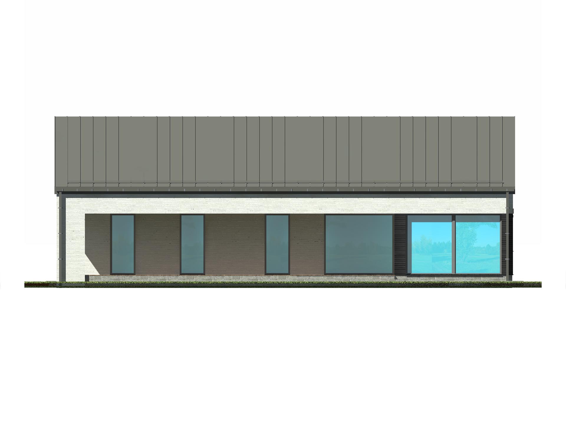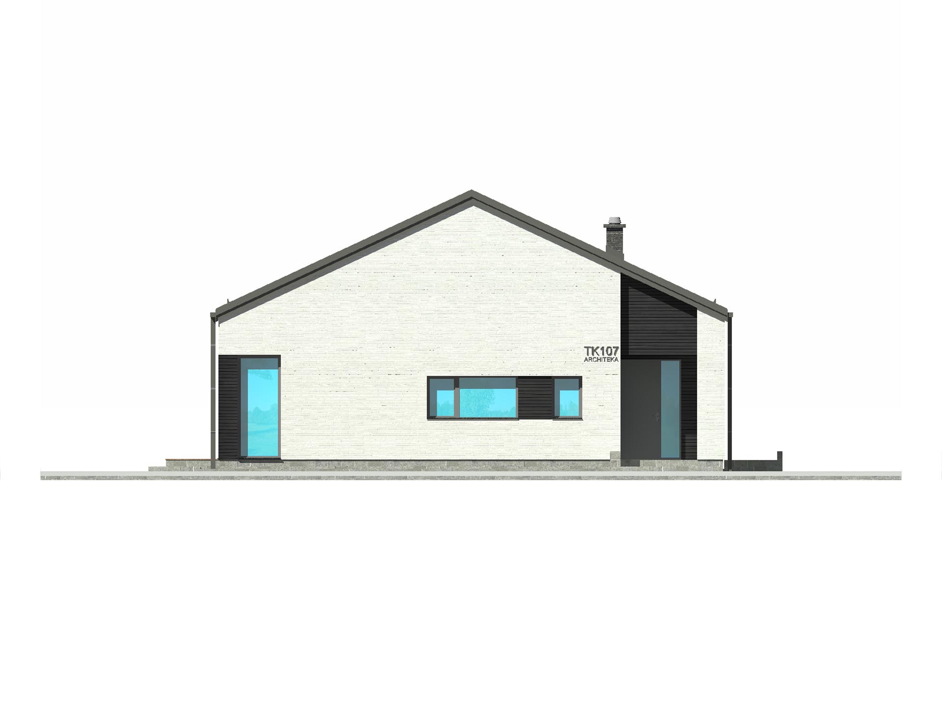 TK107 to prosty dom parterowy zaprojektowany w stylistyce nowoczesnej stodoły. Minimalizm, brak zdobień i dbałość o funkcje użytkowe to cele jakie starali się osiągnąć nasi inżynierowie. Przestronna strefa dzienna, kuchnia ze spiżarnią dwie łazienki i cztery pokoje oraz pomieszczenia pomocnicze zapewnią wygodne mieszkanie pięcioosobowej rodzinie.