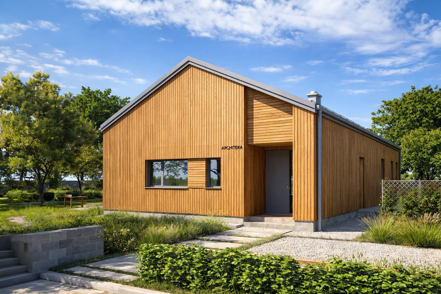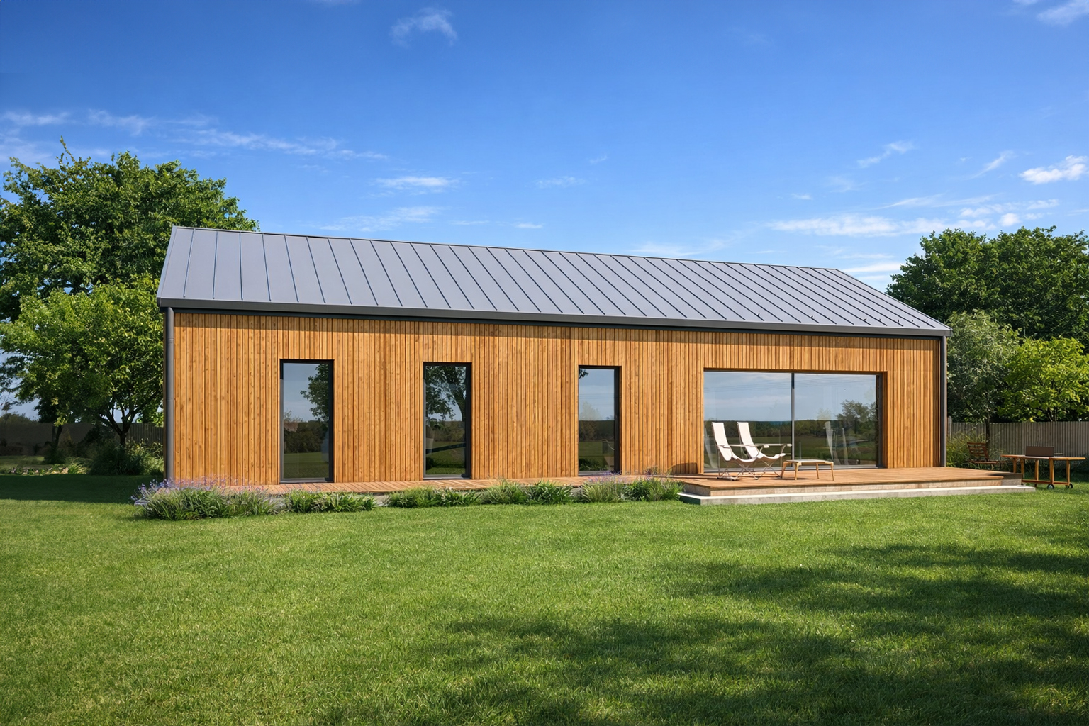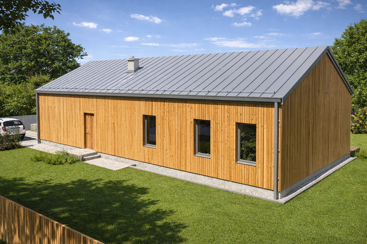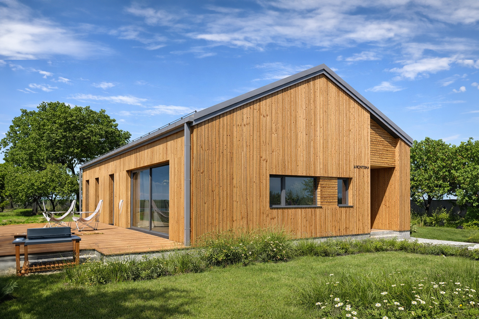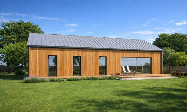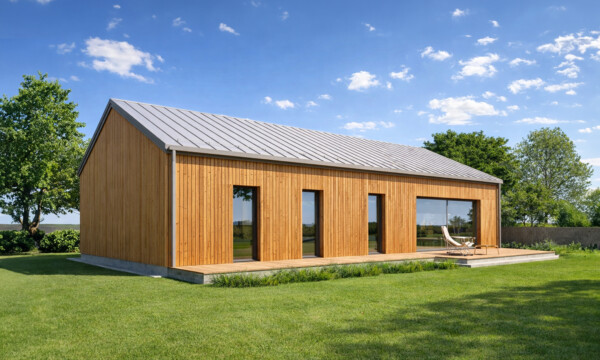 TK108d to prostota i minimalizm nowoczesnej stodoły. Podczas projektowania dążyliśmy do uzyskania niskich kosztów budowy i eksploatacji gotowego domu . Przestronna strefa dzienna, kuchnia ze spiżarnią dwie łazienki i cztery pokoje oraz pomieszczenia pomocnicze zapewnią wygodne mieszkanie pięcioosobowej rodzinie.