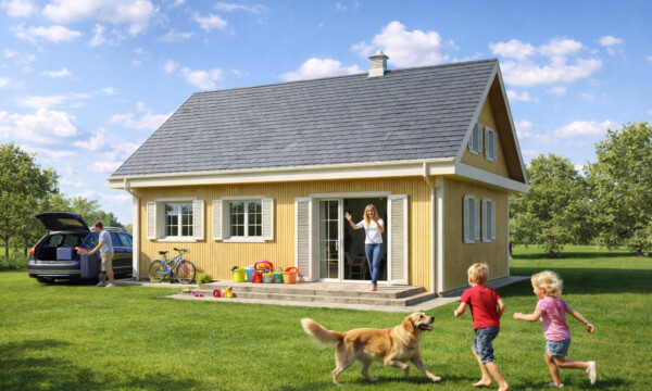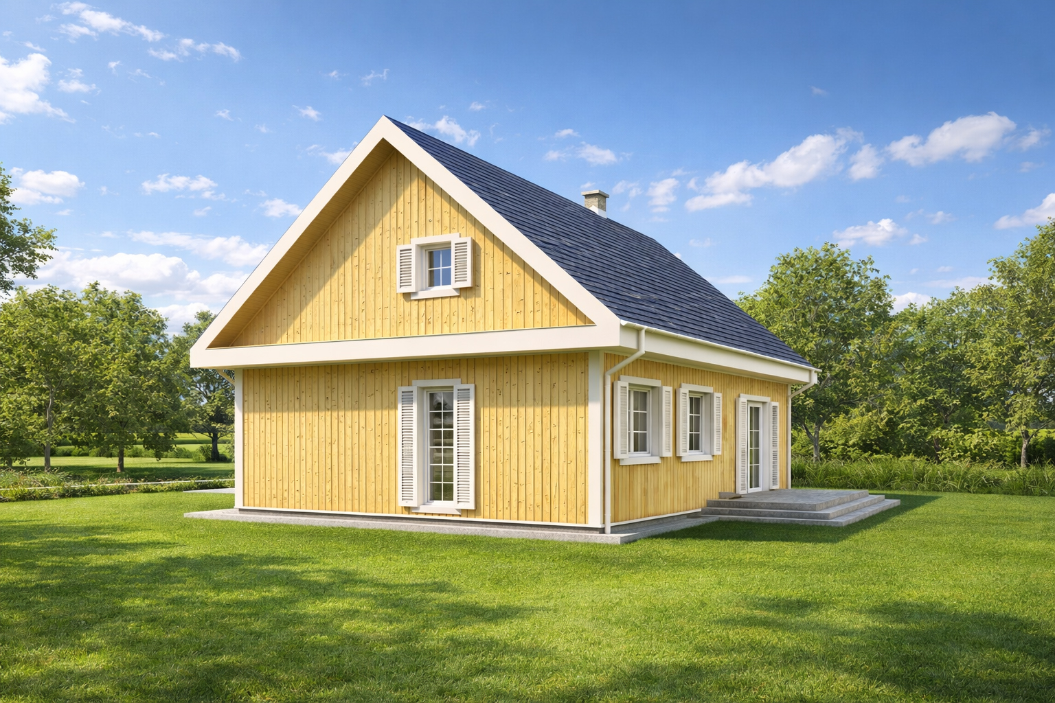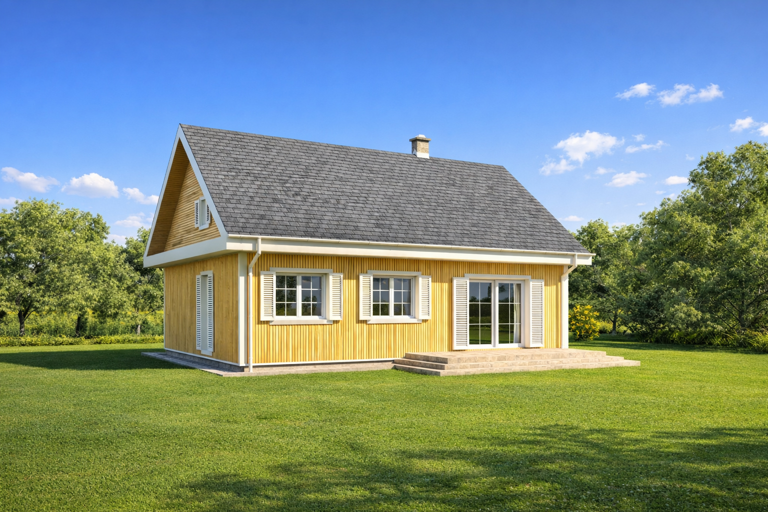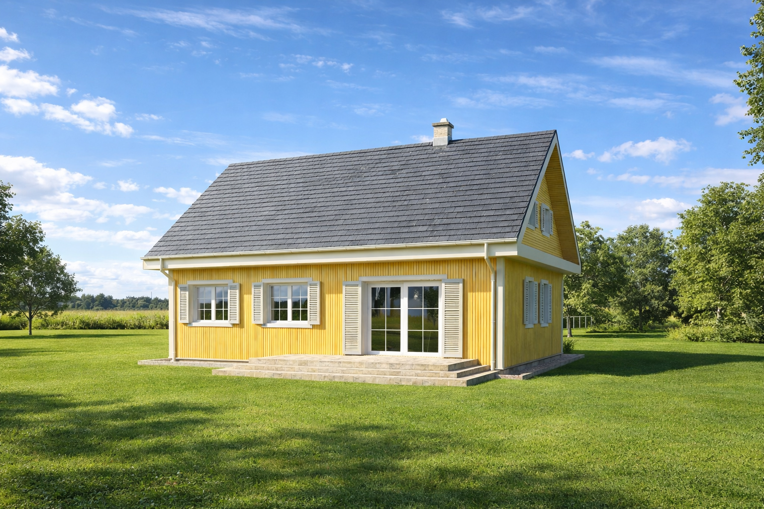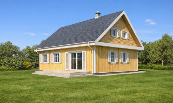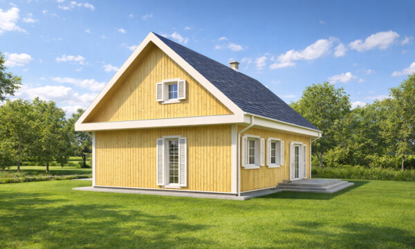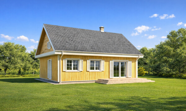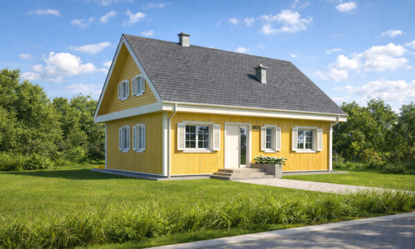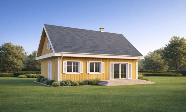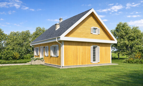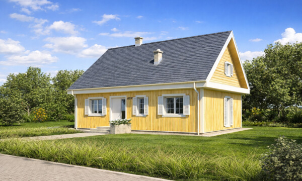 Mały, parterowy domek, w którym dzięki niezwykle funkcjonalnemu rozłożeniu pomieszczeń program użytkowy dla czteroosobowej rodziny zmieszczono na zaledwie 76 m2. Dzięki temu zabiegowi dom jest niezwykle tani w budowie jak również, co bardzo ważne, w późniejszej eksploatacji. Dom posiada trzy sypialnie, salon, kuchnię, łazienkę oraz wiatrołap i pomieszczenie gospodarcze. W projekcie zastosowano ogrzewanie podłogowe zasilane powietrzną pompą ciepła.