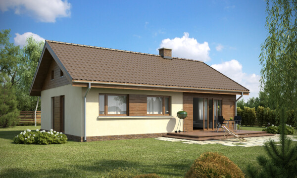 Mały, parterowy domek, w którym dzięki niezwykle funkcjonalnemu rozłożeniu pomieszczeń program użytkowy dla czteroosobowej rodziny zmieszczono na zaledwie 79 m2. Dzięki temu zabiegowi dom jest niezwykle tani w budowie jak również, co bardzo ważne, w późniejszej eksploatacji. Dom posiada trzy sypialnie, salon, kuchnię, łazienkę oraz wiatrołap i pomieszczenie gospodarcze.