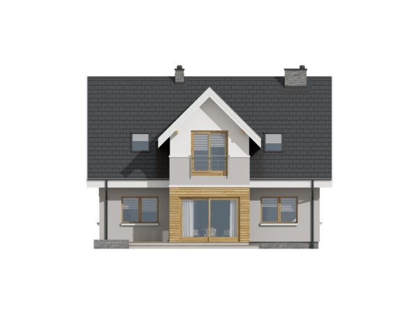 Dom jednorodzinny z poddaszem użytkowym. Niezwykle funkcjonalny, dzięki pokojowi na parterze, który według potrzeb może zmienić się w gabinet lub dodatkowy pokój dla osoby starszej lub gości. Obszerna sień pomieści wygodną szafę na ubrania oraz np. wózek dziecięcy. Wygodny salon z jadalnią są połączone z kuchnią dużymi przesuwnymi drzwiami, a wszystko otwarte na ogród dużymi witrynami. Poddasze mieści aż cztery pokoje i dużą łazienkę. W naszej ofercie dostępne jest również kilka wersji z garażem TK10G, TK10GL2 oraz w odbiciu lustrzanym TK11L, a także różne warianty wielkościowe TK10, TK111. Ponadto pracownia nasza jest otwarta na Państwa sugestie i propozycje zmian.