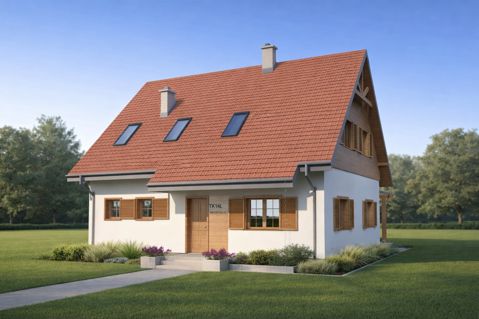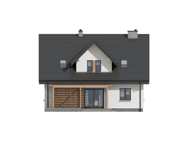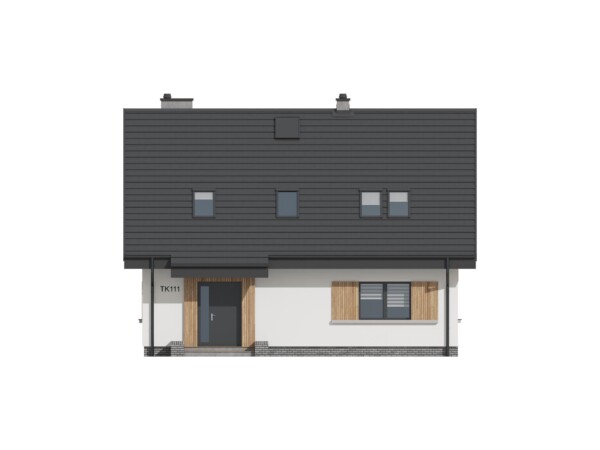 Dom jednorodzinny z poddaszem użytkowym. Niezwykle funkcjonalny, dzięki pokojowi na parterze, który według potrzeb może zmienić się w gabinet lub dodatkowy pokój dla osoby starszej lub gości. Obszerna sień pomieści wygodną szafę na ubrania oraz np. wózek dziecięcy. Wygodny salon z jadalnią są połączone z kuchnią dużymi przesuwnymi drzwiami, a wszystko otwarte na ogród dużymi witrynami. Poddasze mieści trzy pokoje i dużą łazienkę i wygodną garderobę, która może pełnić inne funkcje pomocnicze. W naszej ofercie dostępne jest również kilka wersji z garażem TK10G, TK10GL2 oraz w odbiciu lustrzanym TK111L, a także różne warianty wielkościowe TK10, TK11.
