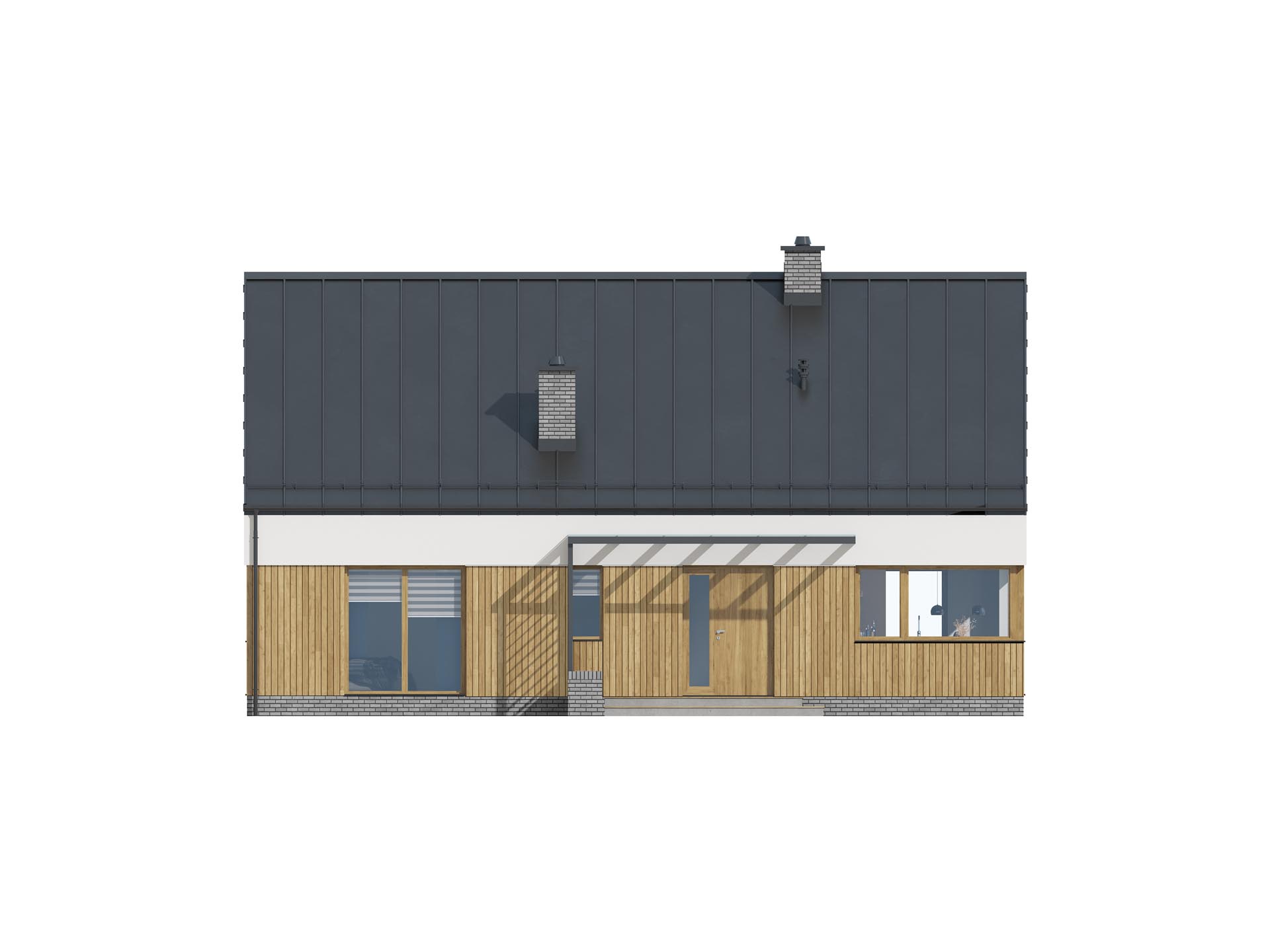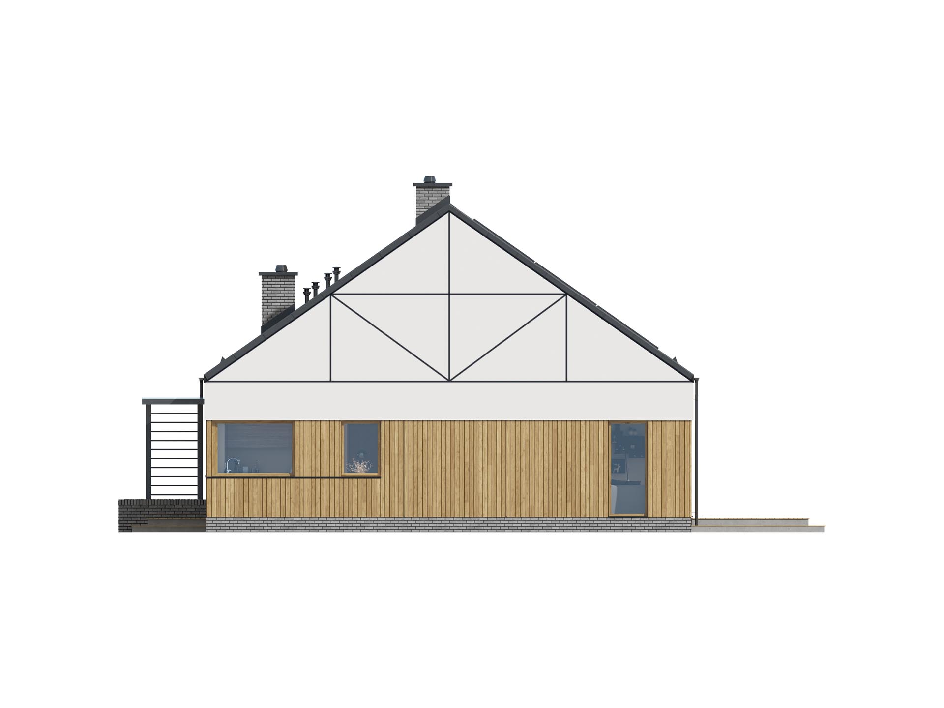 TK118 energooszczędny dom parterowy w technologii drewnianej szkieletowej, zaprojektowany z dbałością o środowisko i wygodę użytkowania. Prosta bryła i wykorzystanie najnowszych technologii, rozwiązań i materiałów budowlanych pozwoli na niskie koszty budowy i utrzymania domu. Znajdziemy tu trzy sypialnie, w tym jedną małżeńską , dwie wygodne łazienki, oraz pomieszczenie techniczne w której zmieści się dowolne źródło ogrzewania. Otwarta strefa dzienna gwarantuje poczucie przestrzeni w domu i korzystnie wpłynie na relacje pomiędzy domownikami. Kuchnia z dużym oknem narożnym pozwoli cieszyć się widokami ogrodu. Dom zaprojektowano dla czteroosobowej rodziny.