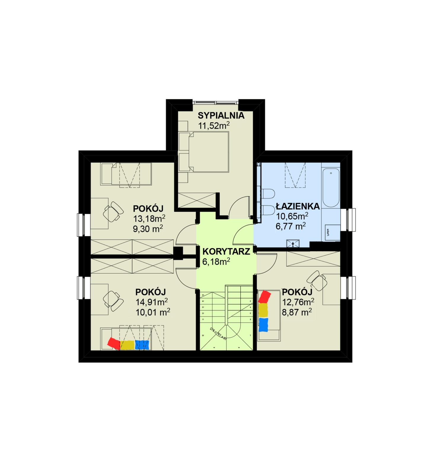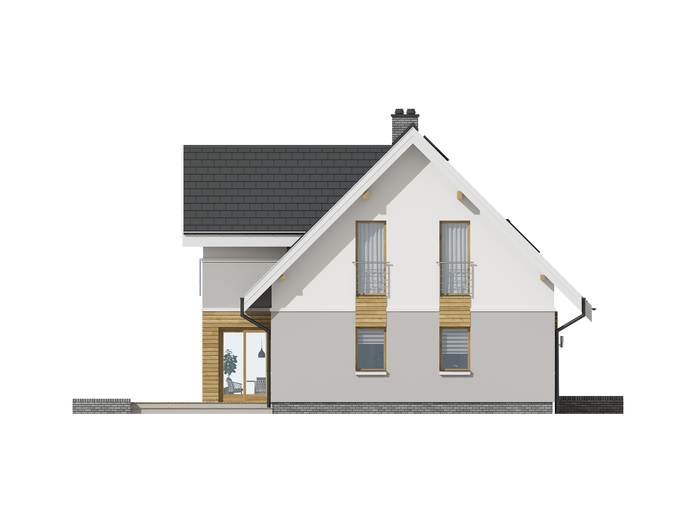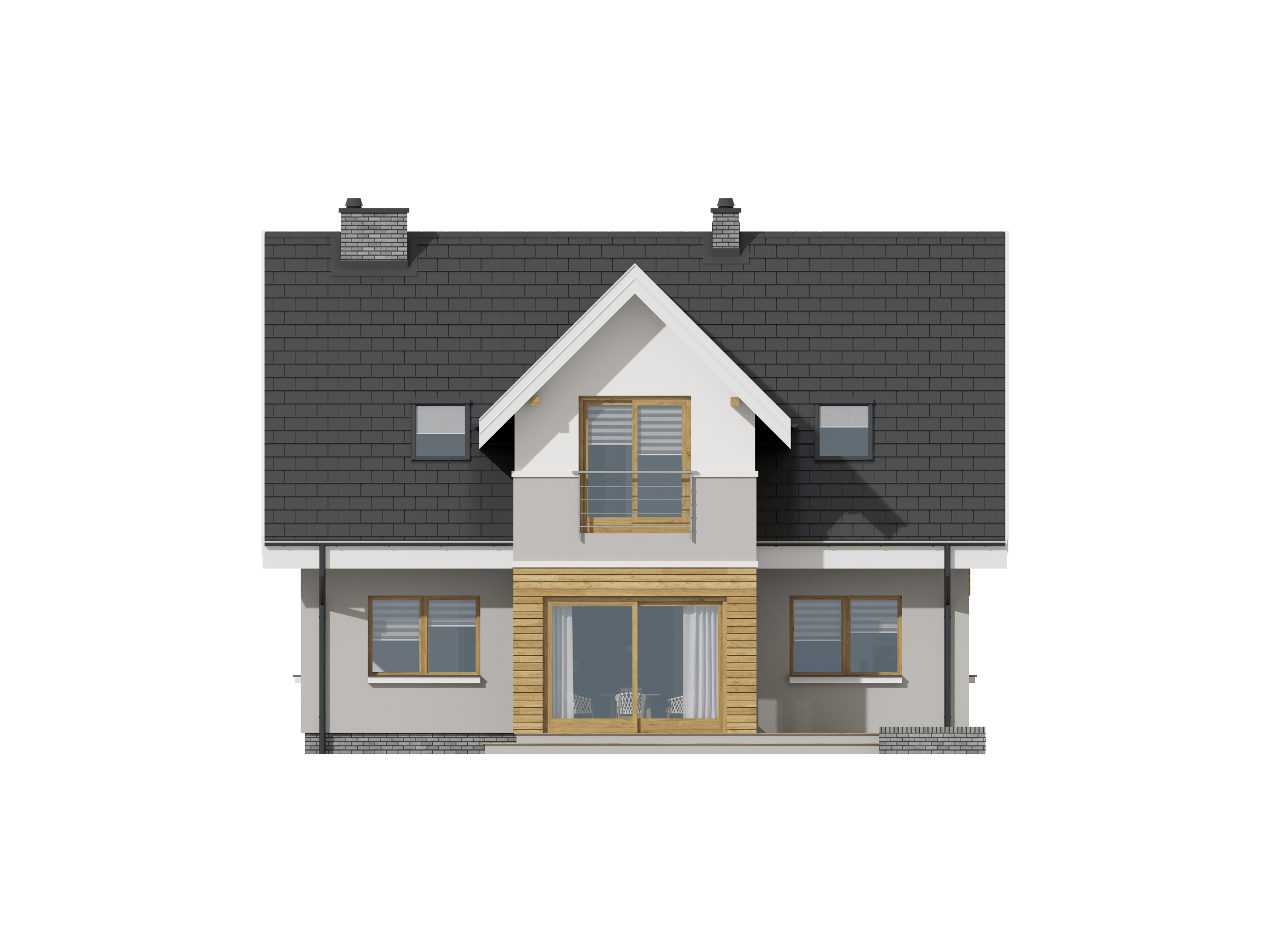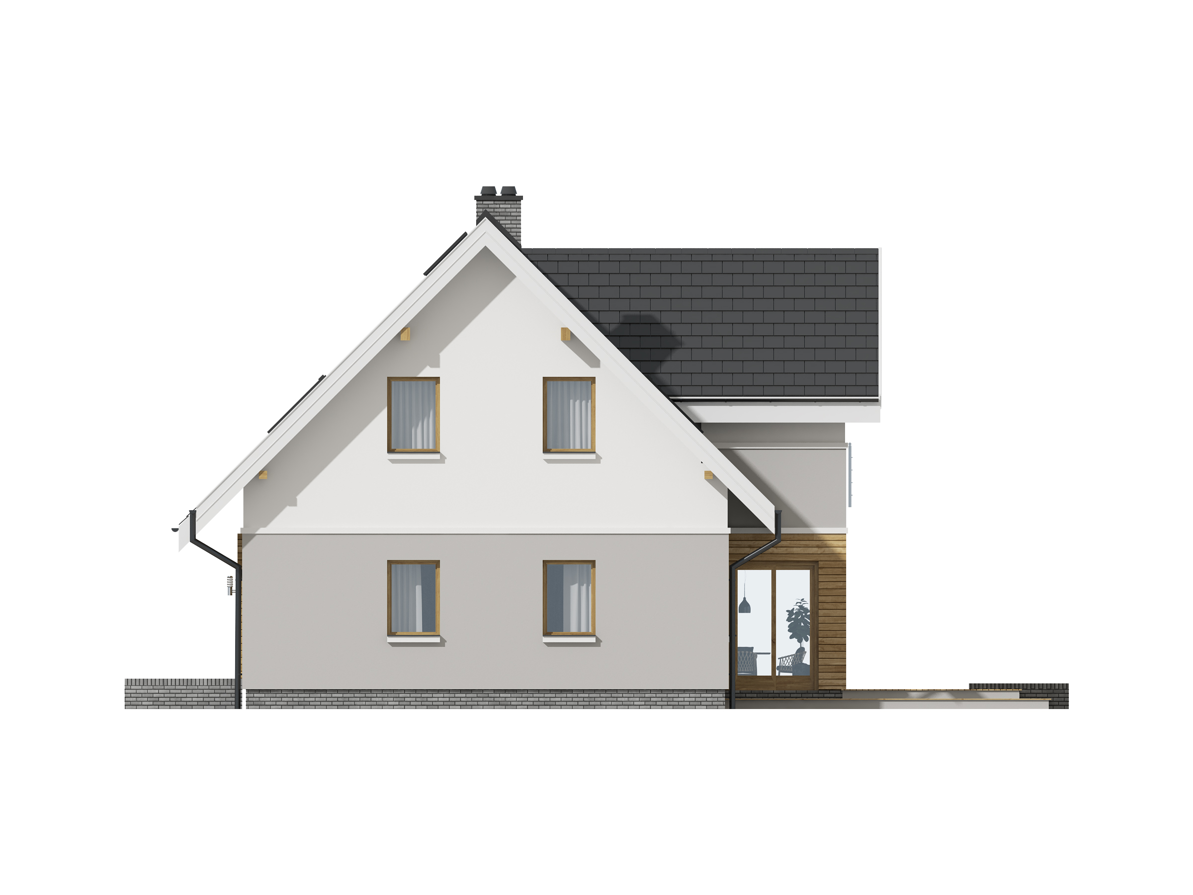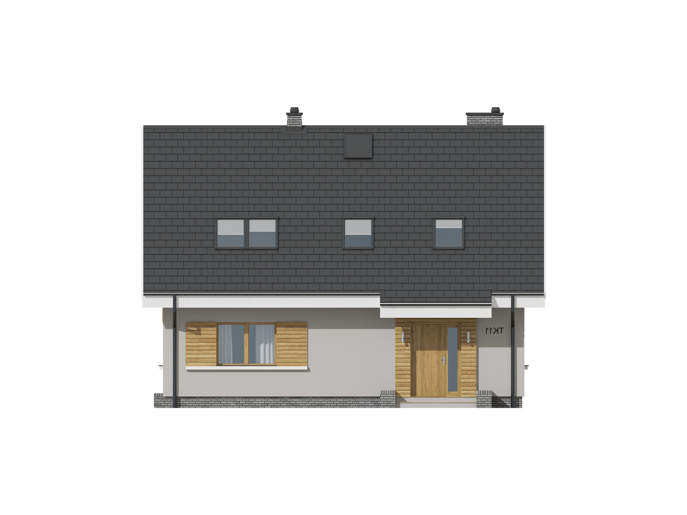 Dom jednorodzinny z poddaszem użytkowym. Niezwykle funkcjonalny, dzięki pokojowi na parterze, który według potrzeb może zmienić się w gabinet lub dodatkowy pokój dla osoby starszej lub gości. Obszerna sień pomieści wygodną szafę na ubrania oraz np. wózek dziecięcy. Wygodny salon z jadalnią są połączone z kuchnią dużymi przesuwnymi drzwiami, a wszystko otwarte na ogród dużymi witrynami. Poddasze mieści aż cztery pokoje i dużą łazienkę. W naszej ofercie dostępne jest również kilka wersji z garażem TK10G, TK10GL2 oraz w odbiciu lustrzanym TK11L, a także różne warianty wielkościowe TK10, TK111. Ponadto pracownia nasza jest otwarta na Państwa sugestie i propozycje zmian.