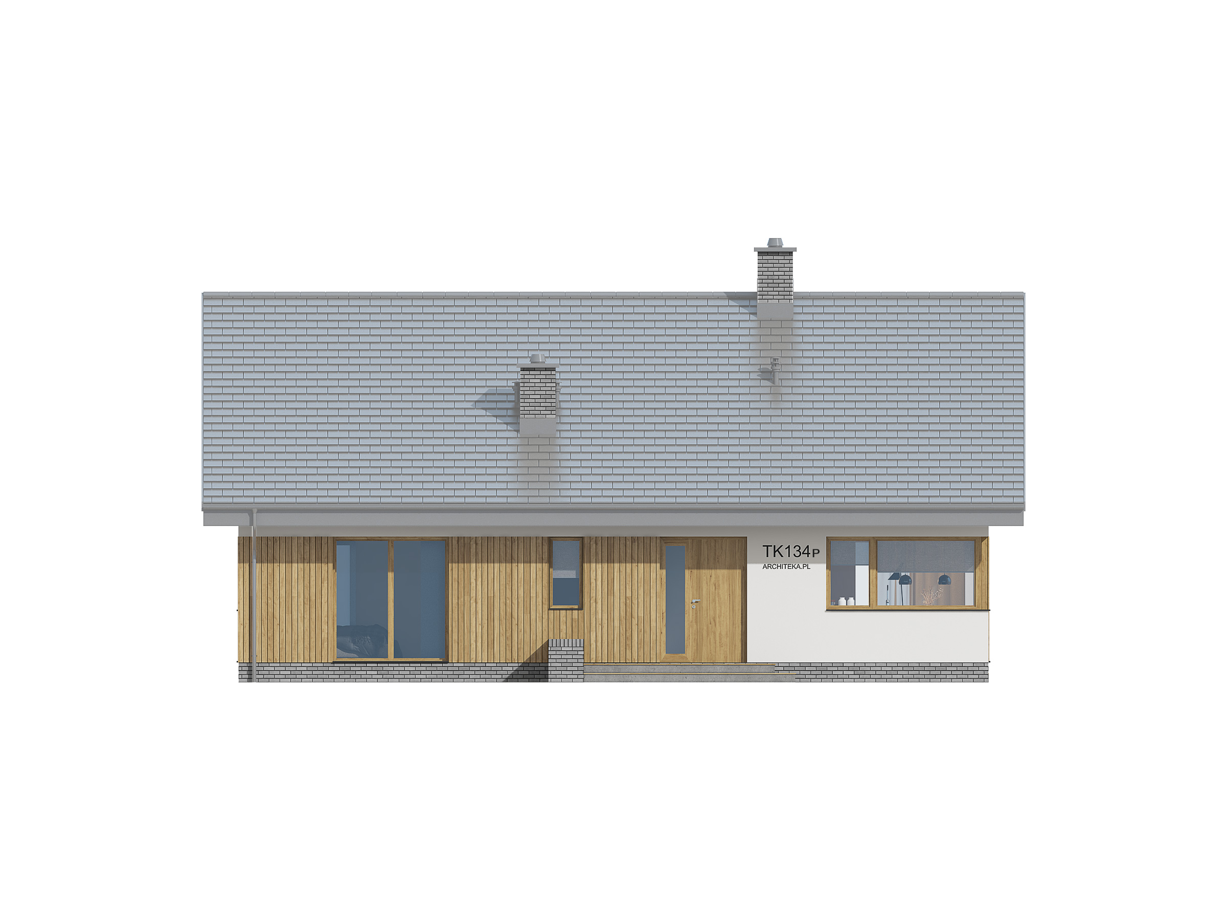 TK134p to energooszczędny dom parterowy posadowiony na płycie fundamentowej. Zaprojektowaliśmy go z myślą o czteroosobowej rodzinie, tak aby dom był wygodny i spełniał wszystkie wymagania mieszkańców. Zastosowane rozwiązania techniczne wpływają bezpośrednio na prostotę budowy, niskie koszty wykonania i eksploatacji przy zachowaniu wysokich standardów energooszczędności. Znajdziemy tu trzy sypialnie, w tym jedną małżeńską , dwie wygodne łazienki, oraz kotłownię w której zmieści się dowolne źródło ogrzewania. Otwarta strefa dzienna gwarantuje poczucie przestrzeni w domu i korzystnie wpływa na relacje pomiędzy domownikami. Otwarta kuchnia z dużym oknem narożnym pozwoli cieszyć się widokami ogrodu.