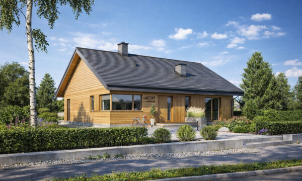 TK134DL to energooszczędny dom parterowy zaprojektowany w technologii drewnianej szkieletowej. Projektowaliśmy go z myślą o czteroosobowej rodzinie, tak aby dom był wygodny i spełniał wszystkie wymagania mieszkańców. Zastosowane rozwiązania techniczne wpływają bezpośrednio na prostotę budowy, niskie koszty wykonania i eksploatacji przy zachowaniu wysokich standardów energooszczędności. Znajdziemy tu trzy sypialnie, w tym jedną małżeńską , dwie wygodne łazienki, oraz kotłownię w której zmieści się dowolne źródło ogrzewania. Otwarta strefa dzienna gwarantuje poczucie przestrzeni w domu i korzystnie wpływa na relacje pomiędzy domownikami. Otwarta kuchnia z dużym oknem narożnym pozwoli cieszyć się widokami ogrodu.