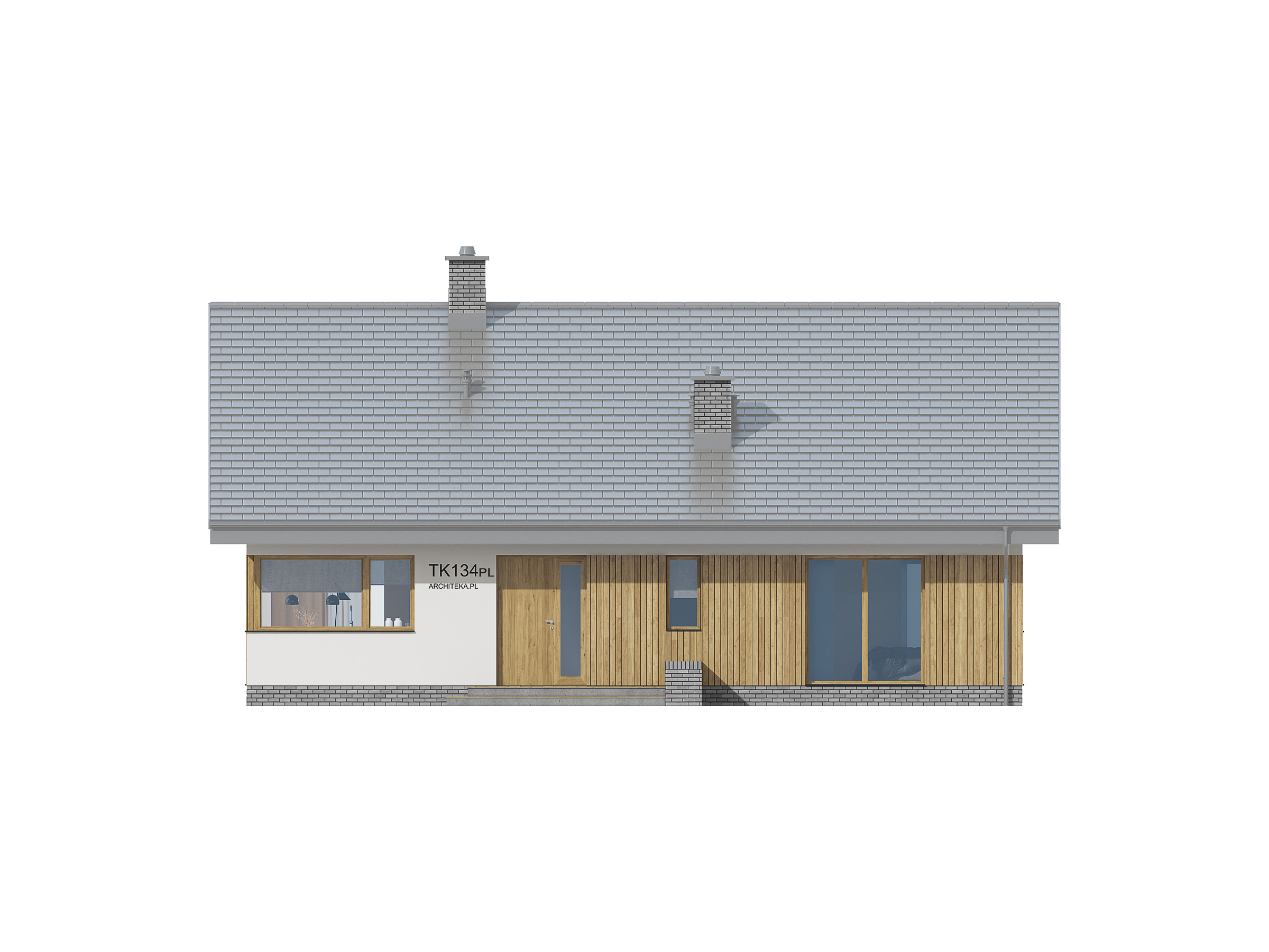 TK134PL to energooszczędny dom parterowy posadowiony na płycie fundamentowej. Zaprojektowaliśmy go z myślą o czteroosobowej rodzinie, tak aby dom był wygodny i spełniał wszystkie wymagania mieszkańców. Zastosowane rozwiązania techniczne wpływają bezpośrednio na prostotę budowy, niskie koszty wykonania i eksploatacji przy zachowaniu wysokich standardów energooszczędności. Znajdziemy tu trzy sypialnie, w tym jedną małżeńską , dwie wygodne łazienki, oraz kotłownię w której zmieści się dowolne źródło ogrzewania. Otwarta strefa dzienna gwarantuje poczucie przestrzeni w domu i korzystnie wpływa na relacje pomiędzy domownikami. Otwarta kuchnia z dużym oknem narożnym pozwoli cieszyć się widokami ogrodu.