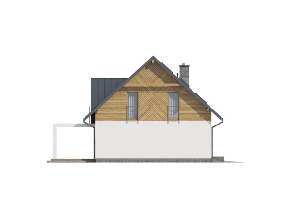 Funkcjonalny i nowoczesny dom z poddaszem użytkowym idealny dla 4-6 osobowej rodziny. Poddasze mieści sypialnię rodziców z osobną łazienką i garderobą, dwa pokoje dziecinne, przestronną łazienkę oraz dodatkową wydzieloną przestrzeń, którą można przeznaczyć na pomieszczenie gospodarcze, pralnię lub garderobę. Na parterze wygodny salon z jadalnia i zamknięta kuchnia , duża łazienka oraz dwa pokoje można je wykorzystać jako pomieszczenia gościnne lub domowe biuro. Duża kotłownia pomieści piec na dowolne paliwo do ogrzewania. Garaż to miejsce na jeden samochód oraz sprzęty ogrodowe lub rowery. Przestrzeń nad garażem można wykorzystać jako strych gospodarczy.