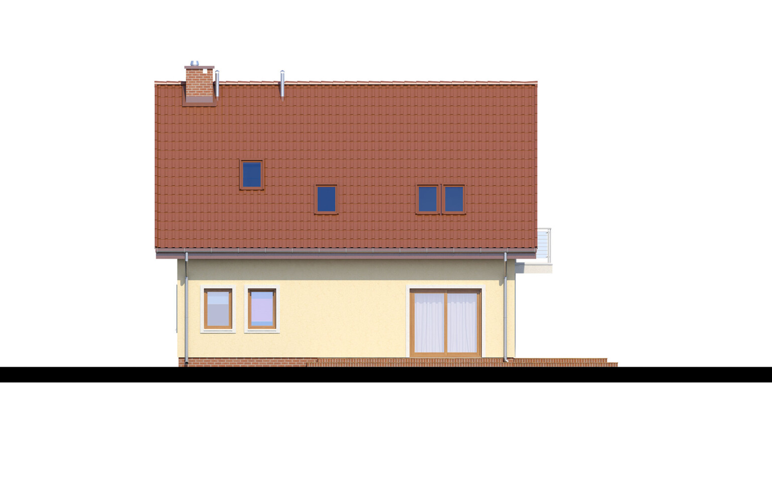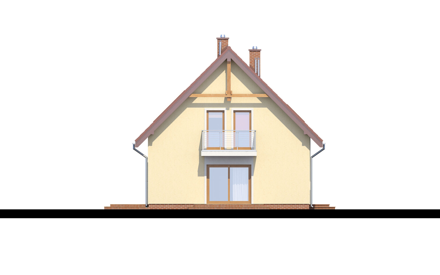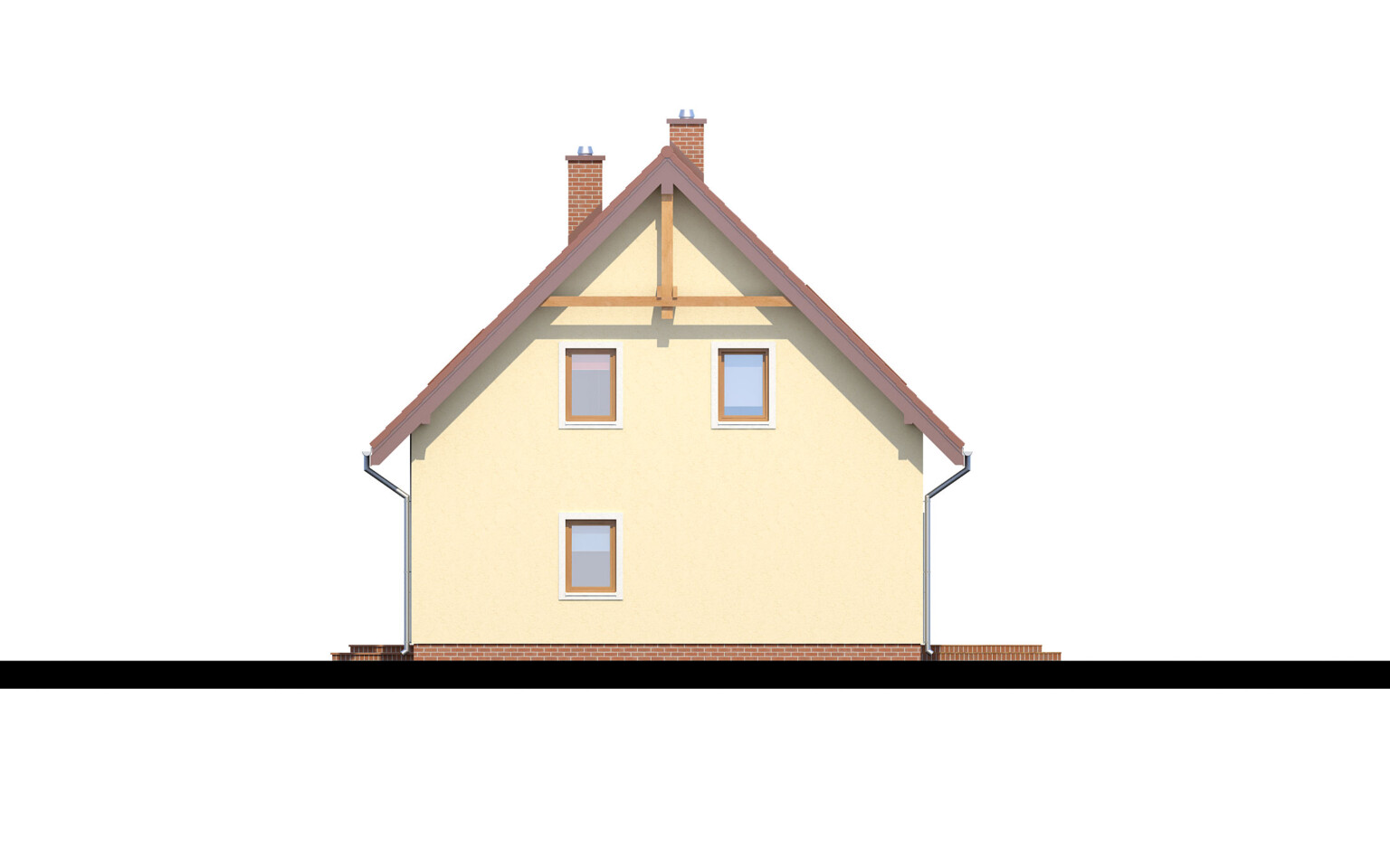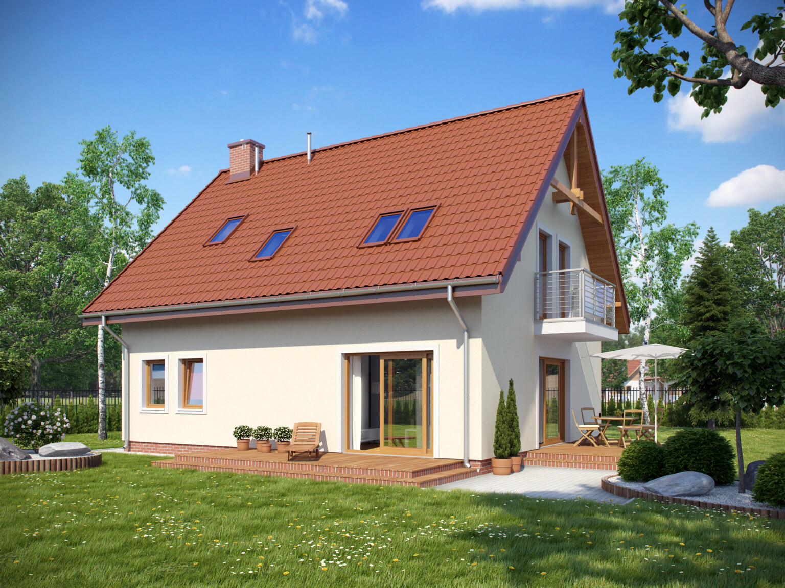 Dom wyróżnia się wyraźnym podziałem na strefę dzienną (parter), dostępną dla domowników i dla gości oraz strefę nocną (piętro), o bardziej kameralnym charakterze. Na parterze poza kuchnią i salonem otwartym na ogród zaproponowaliśmy przestronny pokój gościnny z łazienką. Na piętrze znajdują się trzy przytulne sypialnie pod spadzistym dachem, duża, wygodna łazienka oraz pomieszczenie pomocnicze, które doskonale sprawdzi się jako schowek lub garderoba.