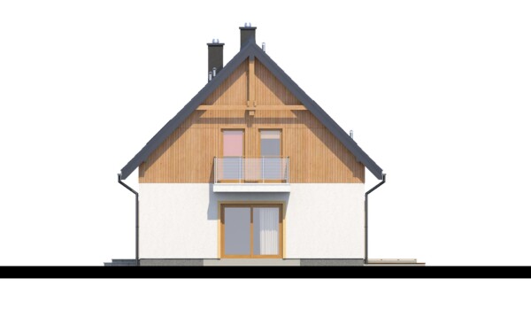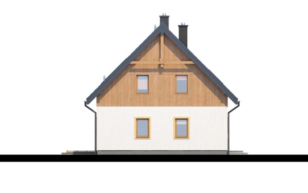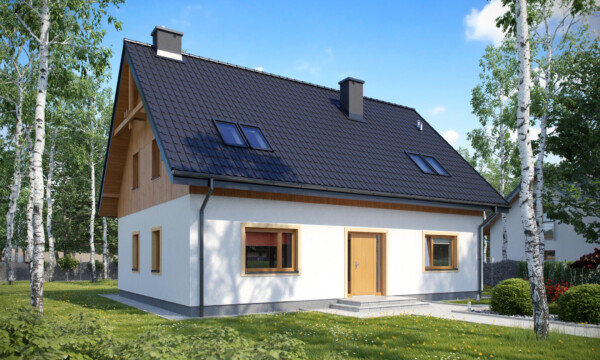 Ten prosty i zarazem tani w budowie dom pozwoli cieszyć się Państwu bardzo funkcjonalnym wnętrzem. Na parterze obok kuchni i salonu z jadalnią zlokalizowano dość mocno rozbudowaną strefę wygodnych i przydatnych pomieszczeń pomocniczych. Znajduje się tu również dodatkowy pokój mogący służyć jako gabinet. Na piętrze znajdują się trzy przytulne sypialnie pod spadzistym dachem. Atutem jednej z sypialni jest spora, pojemna garderoba. W naszej ofercie dostępna jest również wersja w odbiciu lustrzanym. Ponadto pracownia nasza jest otwarta na Państwa sugestie i propozycje zmian.