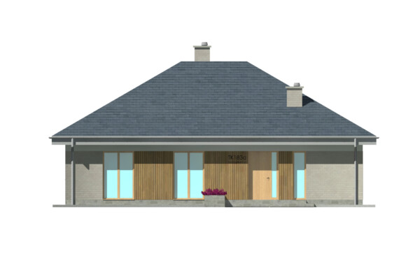 Prostota, wygoda i ekonomia użytkowania to główne cechy jakie ma spełnić ten parterowy dom. Na 108 metrach kwadratowych zaprojektowaliśmy wygodny salon z dużą jadalnią, sypialnię z odrębną garderobą, dwie łazienki, dwa wygodne pokoje i kuchnię która może być otwarta lub zamknięta w zależności od potrzeb. Pomieszczenie techniczne pomieści wszelkie niezbędne urządzenia grzewcze i techniczne dla obsługi domu. Bryła budynku oraz zastosowane rozwiązania konstrukcyjne zapewnią niskie koszty budowy. TK183A jest domem zaprojektowanym w technologii murowanej.