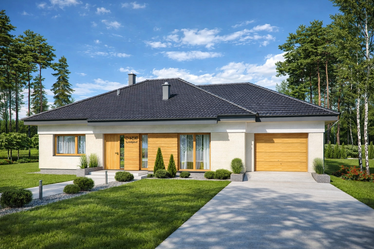 TK234 nieduży, ale bardzo funkcjonalnie zaprojektowany dom. Znajdziemy tu trzy sypialnie, w tym jedną małżeńską z garderobą i łazienką. Otwarta strefa dzienna gwarantuje poczucie przestrzeni w domu. Dodatkowym atutem projektu jest zadaszony taras, w lecie stanowiący przedłużenie salonu. W budynku znalazły się pomieszczenia gospodarcze takie jak duża kotłownia oraz pralnia i garderoba. Dodatkowe miejsce do przechowywania możemy wygospodarować w dużym garażu. Projekt jest dostępny w wersji z ogrzewaniem gazowym lub na paliwo stałe, na życzenie możemy także przygotować inne rozwiązania.