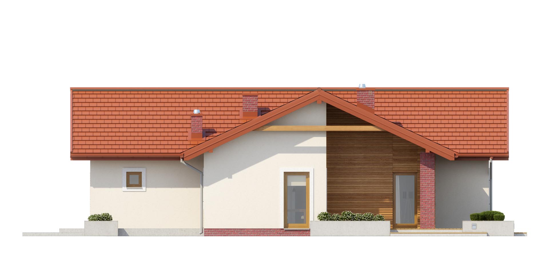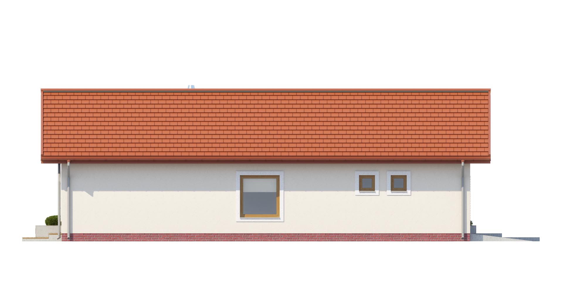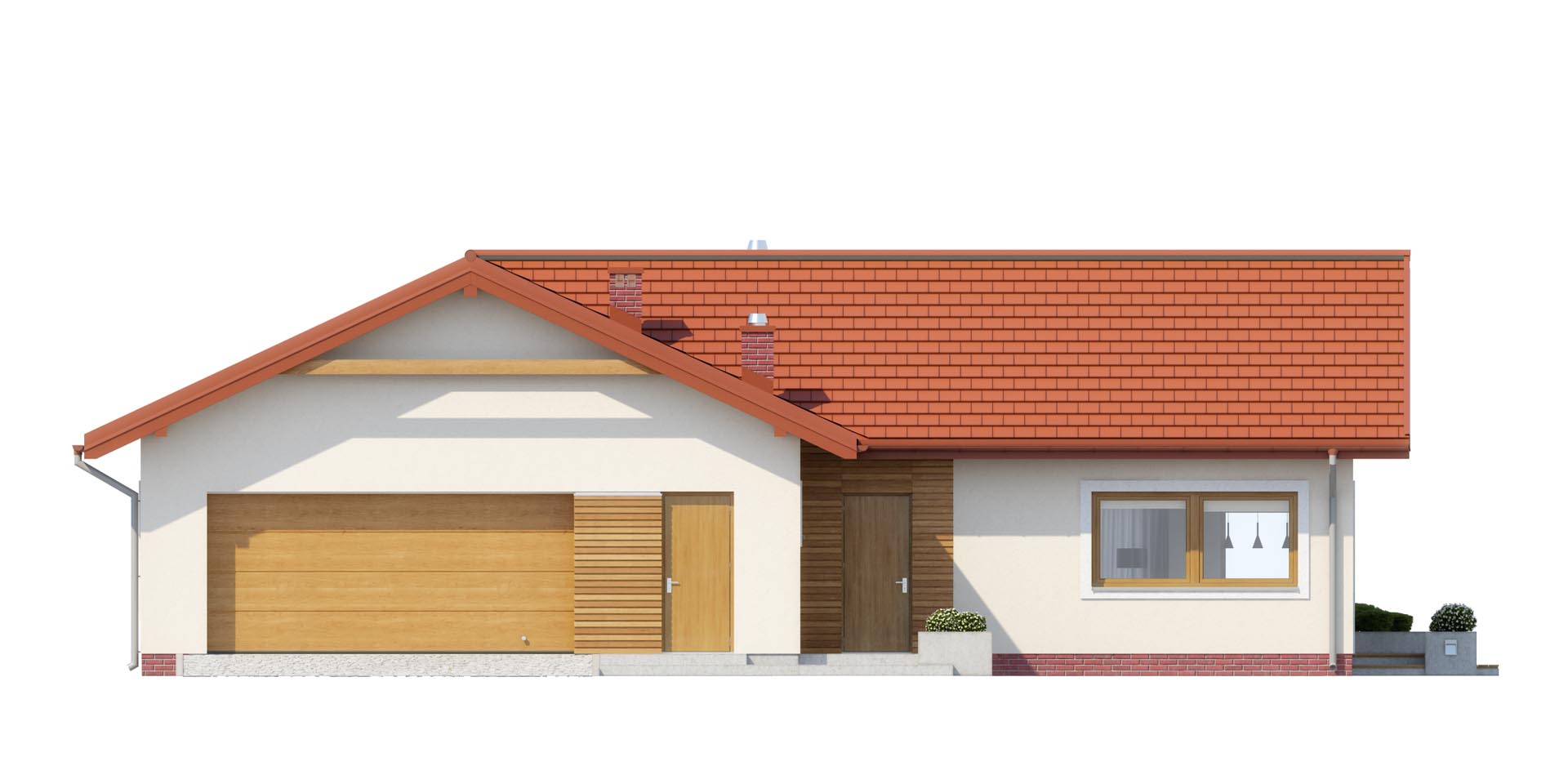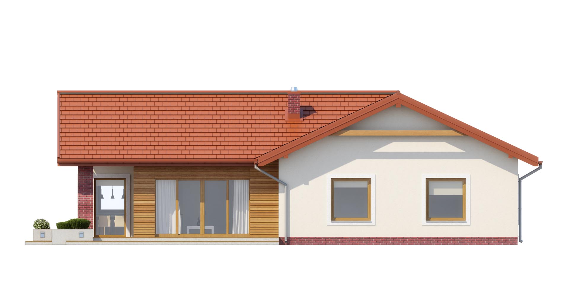 Bardzo wygodny dom dla czteroosobowej rodziny. Spodoba się on osobom ceniącym oprócz walorów wizualnych również funkcjonalność pomieszczeń. Dzięki rozbudowanej strefie gospodarczej przy garażu na pewno nie zabraknie tu miejsca na narty, sanki czy rowery. Również przy kuchni pomyślano o małej spiżarce, która przyda się niejednej pani domu. Dom posiada trzy wygodne sypialnie przy czym jedną połączona z garderobą.