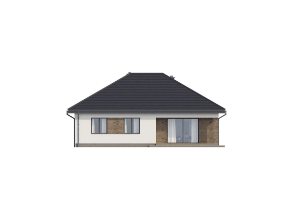 Kompaktowy i wygodny dom parterowy dla czteroosobowej rodziny. Spodoba się osobom ceniącym oprócz walorów wizualnych również funkcjonalność pomieszczeń. Dom mieści trzy wygodne sypialnie, w tym największa jest z własną łazienką i wygodną garderobą. Pojemny garaż jest połączony z obszerną kotłownią, która może także posłużyć za spiżarnię. W części sypialnej domu wydzielono małe pomieszczenie gospodarcze które może pełnić rolę pralni lub schowka.