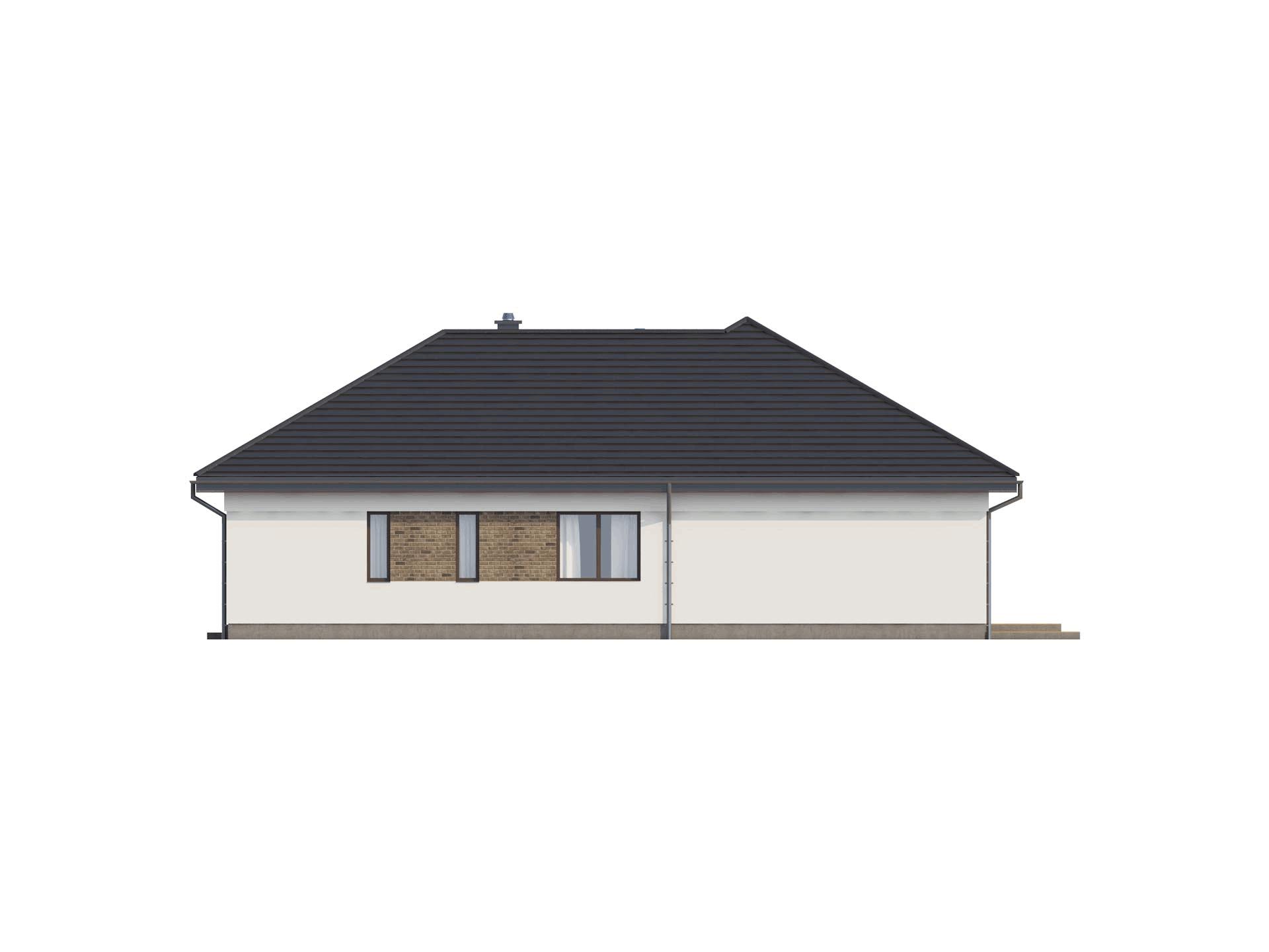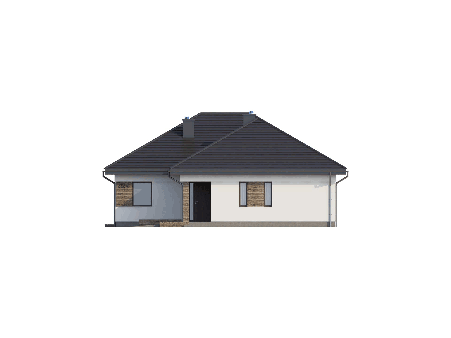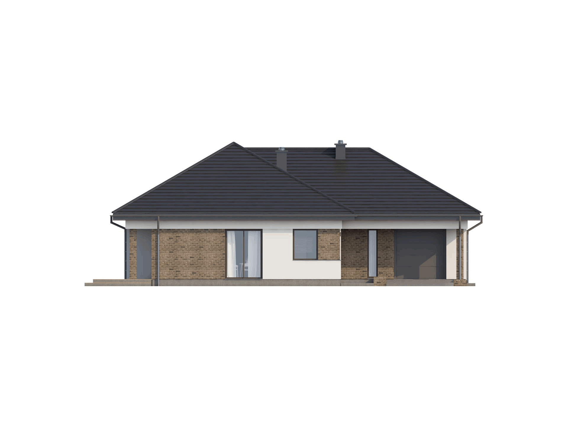 Kompaktowy i wygodny dom parterowy dla czteroosobowej rodziny. Spodoba się osobom ceniącym oprócz walorów wizualnych również funkcjonalność pomieszczeń. Dom mieści trzy wygodne sypialnie, w tym największa jest z własną łazienką i wygodną garderobą. Pojemny garaż jest połączony z obszerną kotłownią, która może także posłużyć za spiżarnię. W części sypialnej domu wydzielono małe pomieszczenie gospodarcze które może pełnić rolę pralni lub schowka.