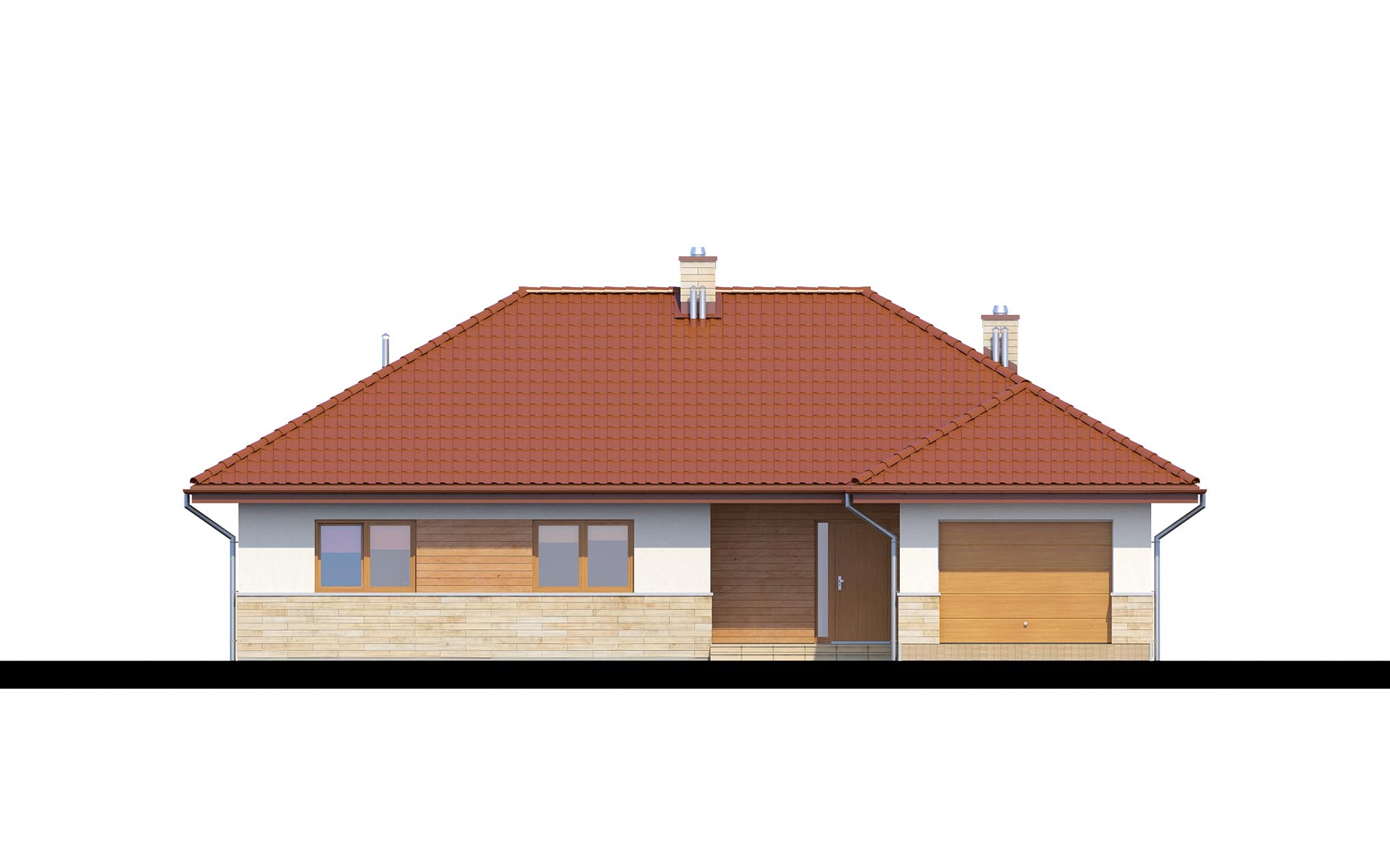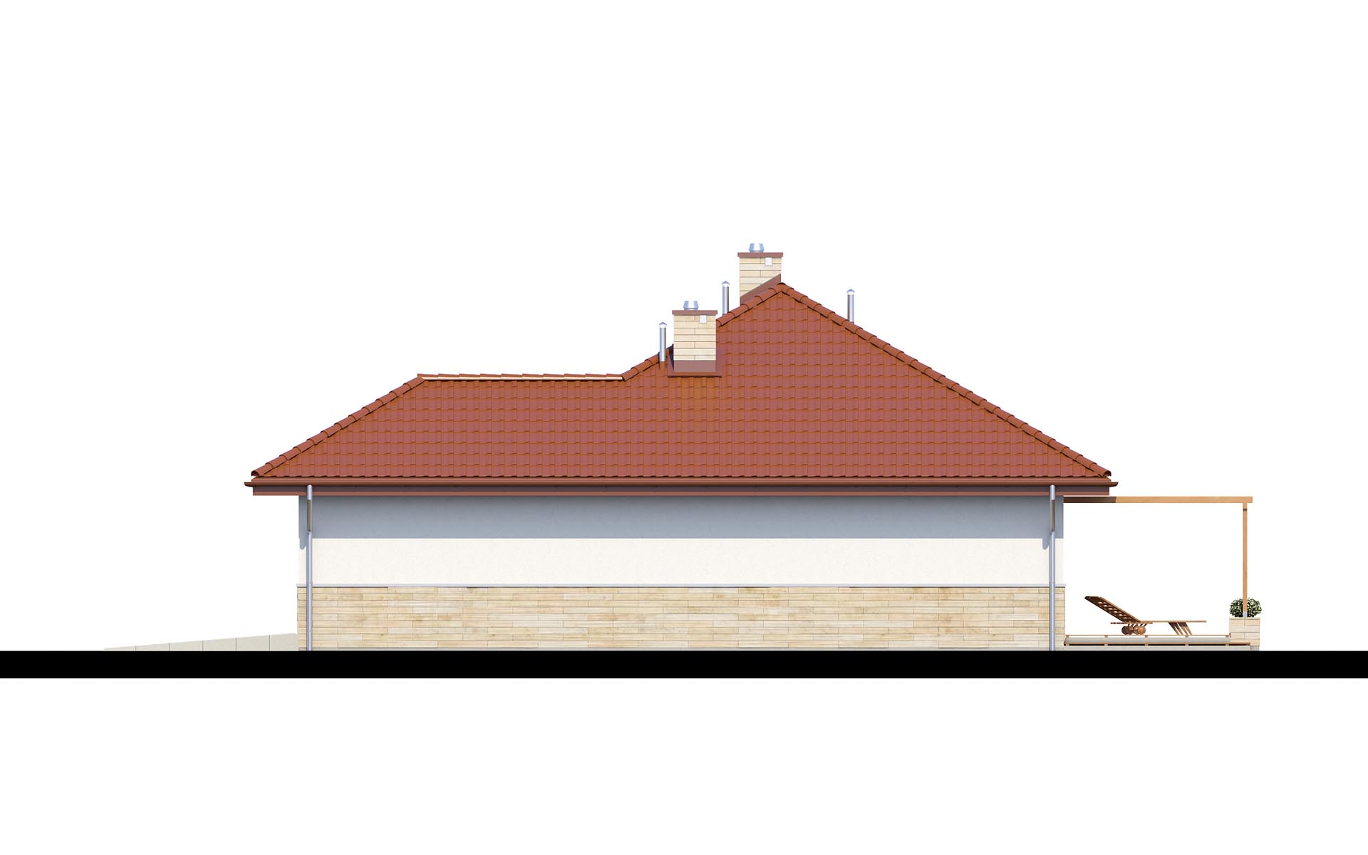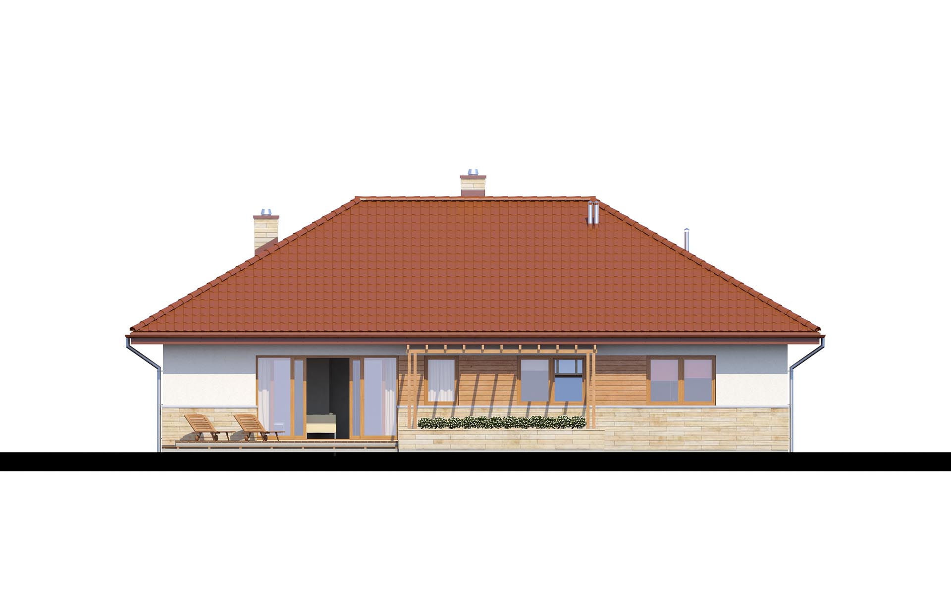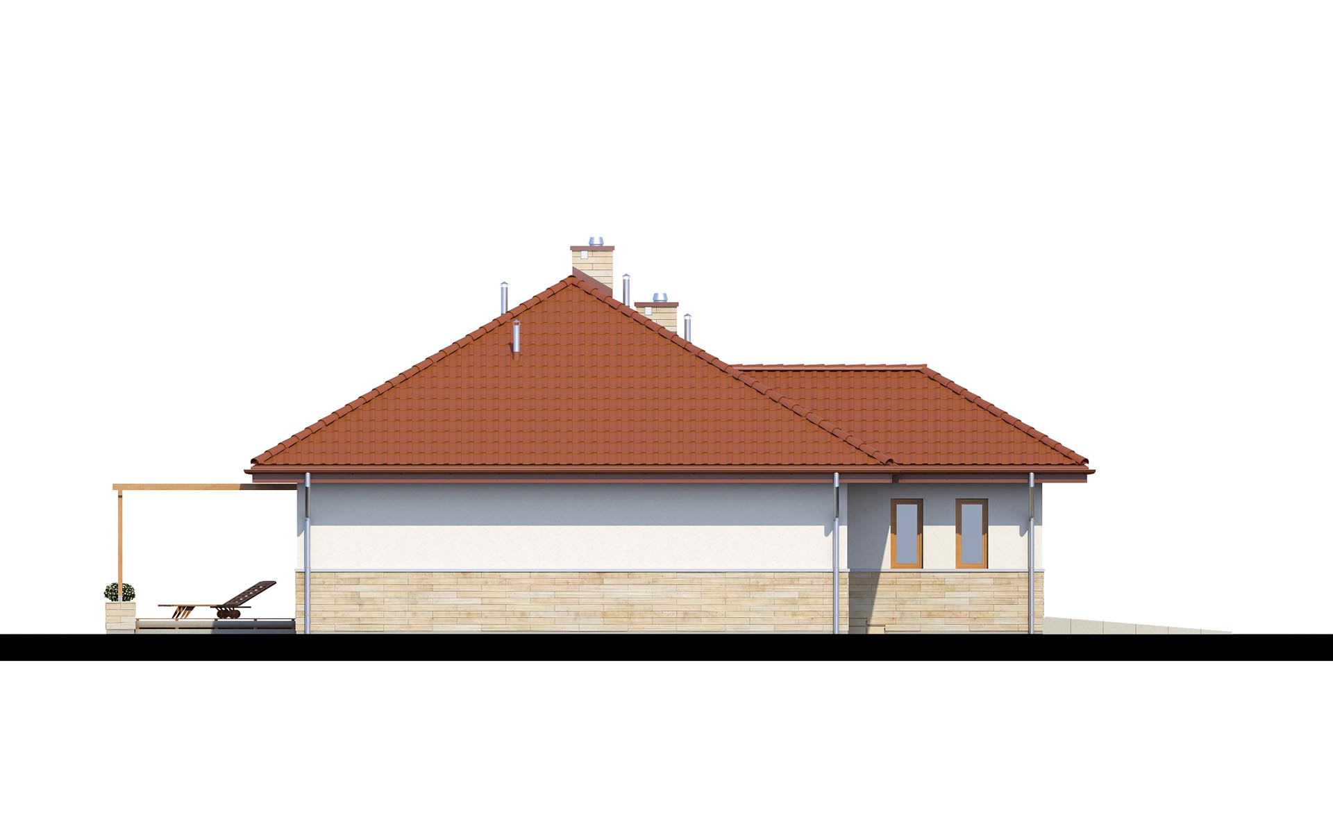 Parterowy dom o racjonalnie rozplanowanym wnętrzu. Wyposażony jest we wszystko, czego potrzebuje czteroosobowa rodzina- trzy pokoje, łazienkę, dodatkowe WC, garderobę oraz przestronny salon otwarty na kuchnię i jadalnię. Dodatkowo w domu znajduje się kotłownia i jednostanowiskowy garaż. Jest to dom o tradycyjnej bryle a elementy zieleni na pergolach oraz naturalne materiały na elewacji sprawiają, że wpasuje się on idealnie w każdy krajobraz.