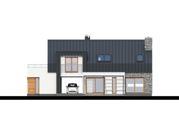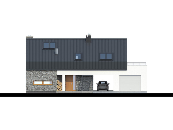 Nastrojowy dom łączący tradycję z nowoczesnością. Wysoki na dwie kondygnacje salon zapewnia poczucie przestrzeni w strefie dziennej. Na parterze znajduje się m.in. biblioteka z kominkiem, połączona zarówno z salonem jak i z jadalnią. Poddasze mieści dwa pokoje dzieci, ze wspólnym tarasem, łazienkę oraz sypialnię rodziców wyposażoną we własną garderobę oraz łazienkę.