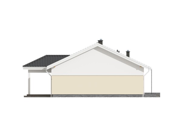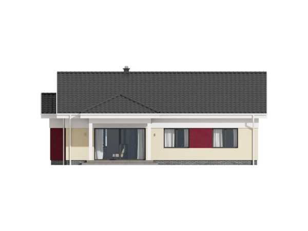 TK61 to nieduży, funkcjonalnie zaprojektowany dom parterowy . Znajdziemy tu trzy spore pokoje i duży salon otwarty na jadalnię z kominkiem i otwartą kuchnię. Konstrukcja budynku została tak zaprojektowana, by kuchnię w zależności od potrzeb domowników można było otworzyć na salon, albo zamknąć wykonując ściankę działową. Dodatkowym atutem domu jest zadaszony taras na którym zmieścimy duży stół. Powierzchnia kotłowni daje możliwość wybrania różnych źródeł ogrzewania. Zachęcamy do obejrzenia podobnych projektów, TK34G z dachem wielospadowym, TK61G z garażem i TK34g2 z garażem dwustanowiskowym.