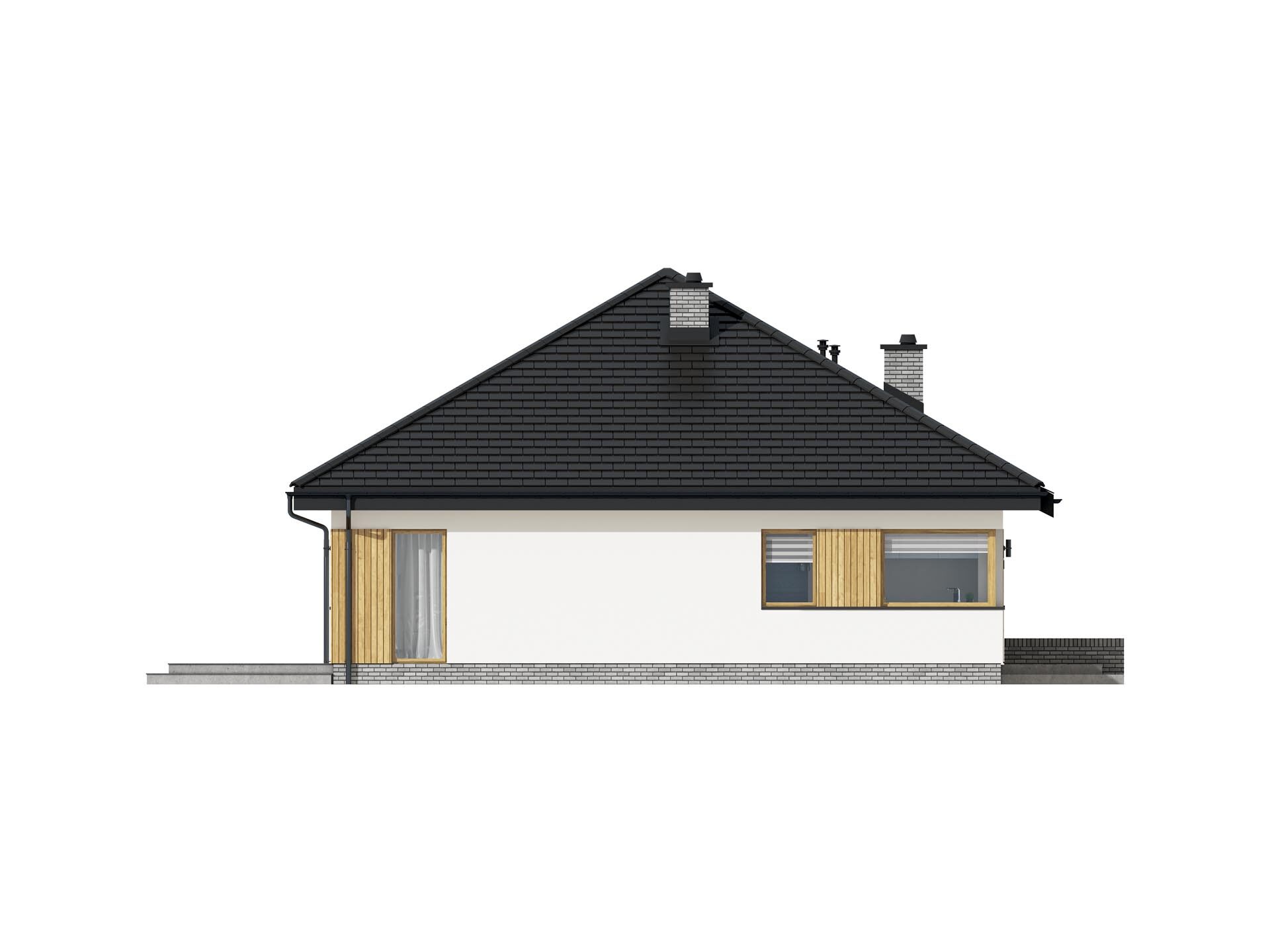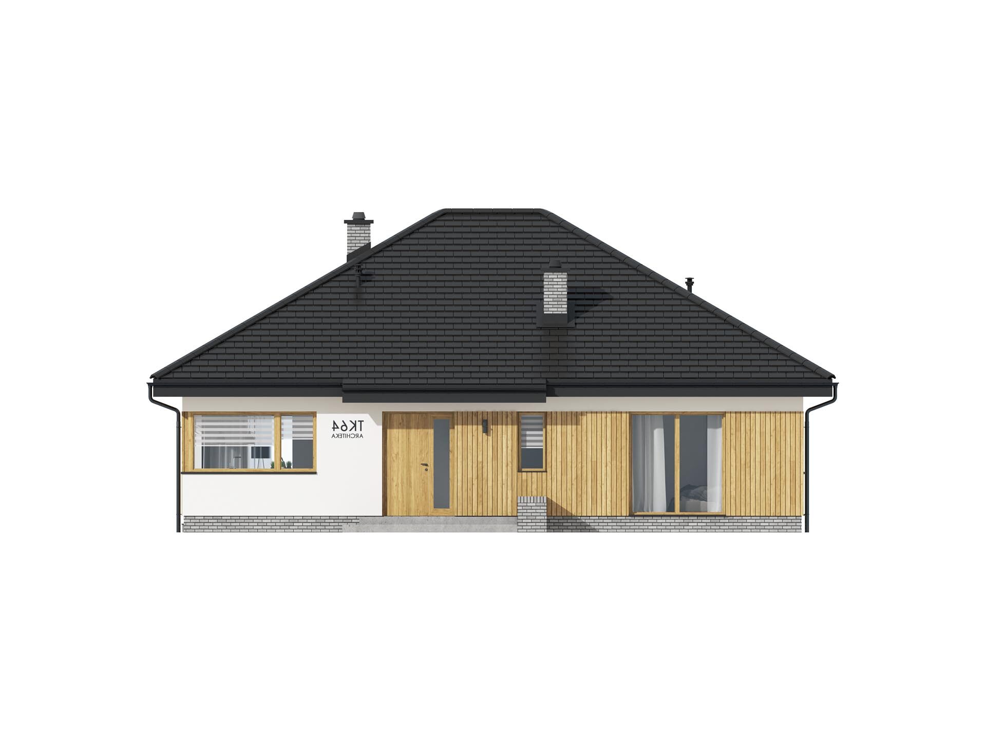 TK64L energooszczędny dom parterowy, zaprojektowany z dbałością o środowisko, wygodę użytkowania. Prosta bryła i wykorzystanie najnowszych technologii, rozwiązań i materiałów budowlanych pozwoli na niskie koszty budowy i utrzymania domu. Znajdziemy tu trzy sypialnie, w tym jedną małżeńską , dwie wygodne łazienki, oraz pomieszczenie techniczne w której zmieści się dowolne źródło ogrzewania. Otwarta strefa dzienna gwarantuje poczucie przestrzeni w domu i korzystnie wpłynie na relacje pomiędzy domownikami. Kuchnia z dużym oknem narożnym pozwoli cieszyć się widokami ogrodu. Dom zaprojektowano dla czteroosobowej rodziny.