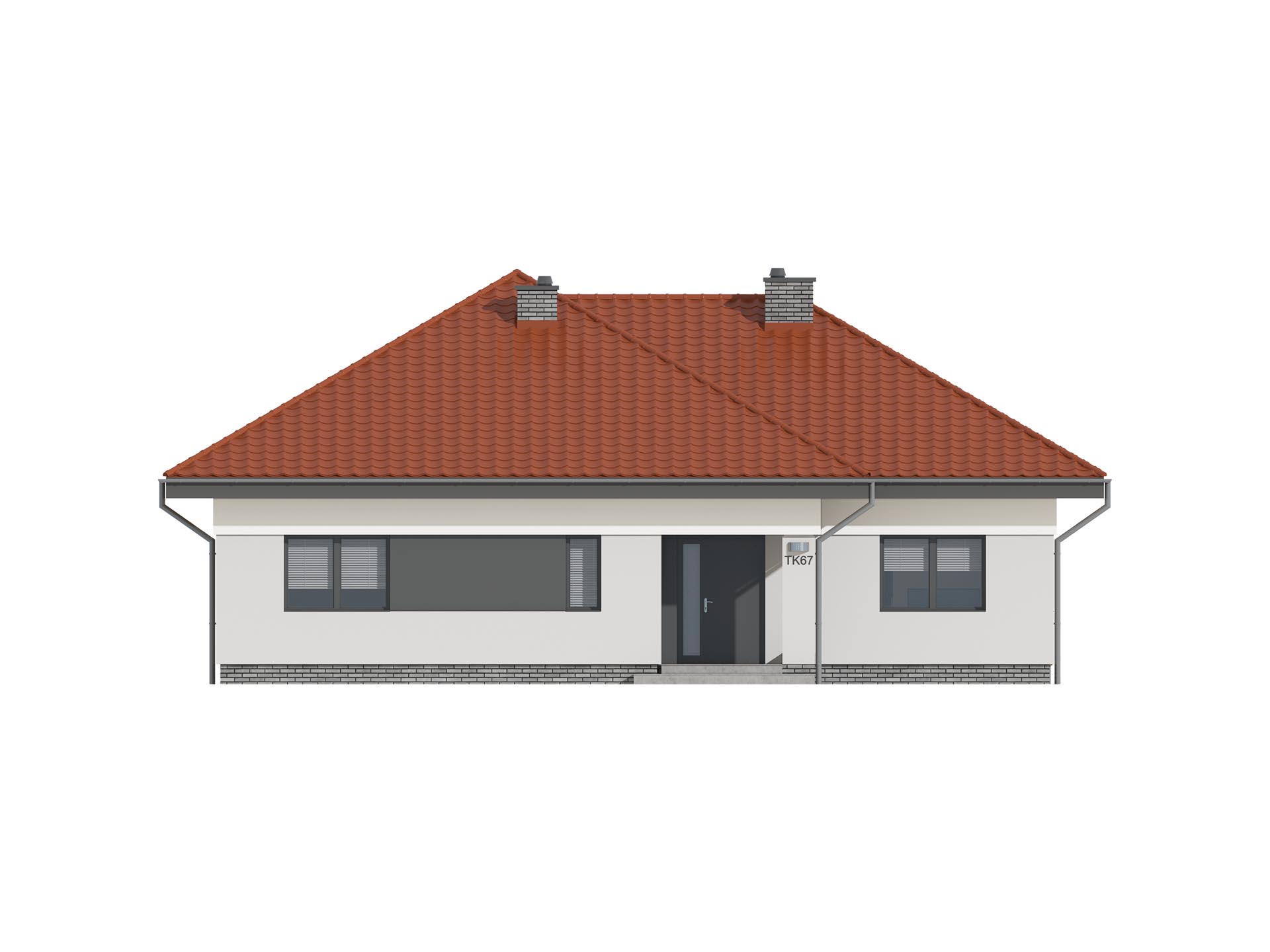 TK67 to nieduży, zwarty i bardzo funkcjonalnie zaprojektowany dom dla czteroosobowej rodziny. Znajdziemy tu trzy spore sypialnie i duży salon i dwie łazienki. Konstrukcja budynku pozwala na dowolną aranżację wnętrza bo wszystkie ściany wewnętrzne są ścianami działowymi. Wygodny zadaszony taras pozwoli cieszyć się ogrodem nawet w nieco chłodniejsze dni. Duża kotłownia pomieści każdy piec i zasobnik na opał jeśli tylko zajdzie taka potrzeba. Zachęcamy do obejr103,18zenia podobnych projektów mniejszy TK69 i TK68 z dachem dwuspadowym.