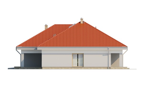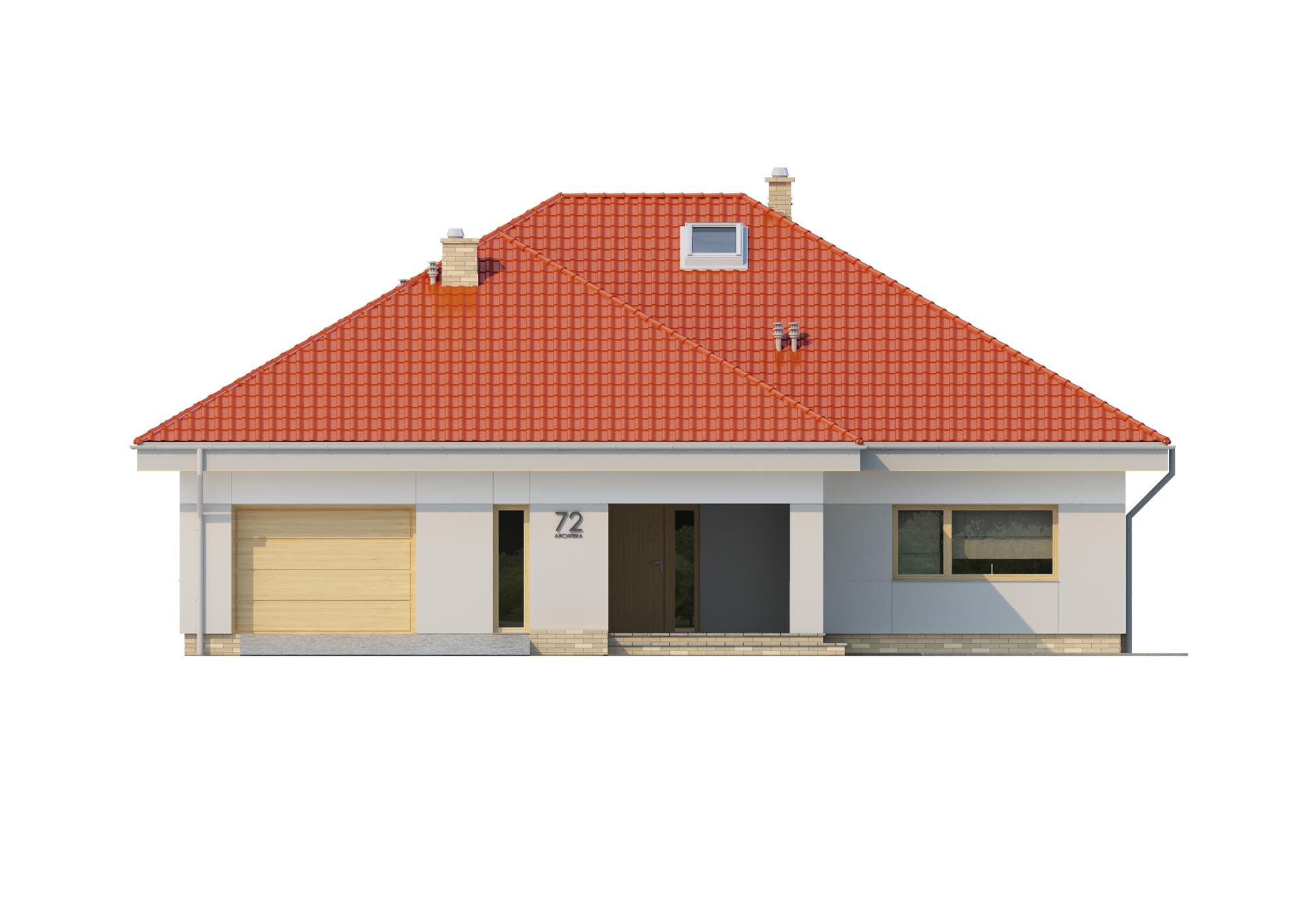 TK72 to nieduży, ale bardzo funkcjonalnie zaprojektowany dom. Znajdziemy tu 3 spore sypialnie i duży salon. Konstrukcja budynku została tak zaprojektowana, by kuchnię w zależności od potrzeb domowników można było albo zostawić zamkniętą, albo otworzyć na salon nie wykonując ścianki działowej. Dodatkowym atutem projektu jest zadaszony taras. W budynku nie zabraknie miejsca na przechowywanie rzeczy i pomieszczenia gospodarcze, a duża powierzchnia kotłowni daje możliwość wybrania pieca również na paliwo stałe. Zachęcamy do obejrzenia podobnych projektów TK71 z podwójnym garażem i TK70 dla rodziny mieszkającej z seniorami.