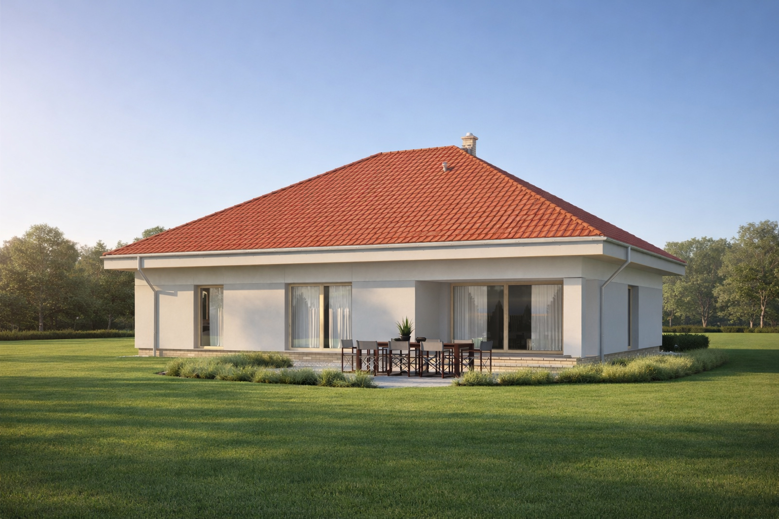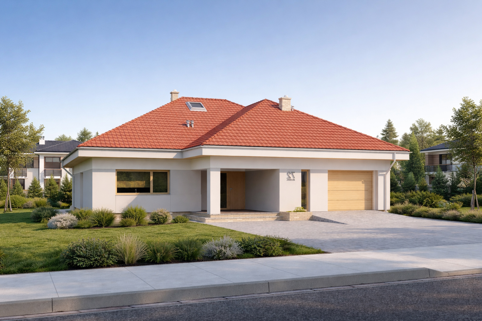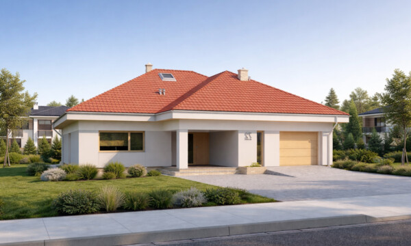 TK72L to nieduży, ale bardzo funkcjonalnie zaprojektowany dom. Znajdziemy tu 3 spore sypialnie i duży salon. Konstrukcja budynku została tak zaprojektowana, by kuchnię w zależności od potrzeb domowników można było albo zostawić zamkniętą, albo otworzyć na salon nie wykonując ścianki działowej. Dodatkowym atutem projektu jest zadaszony taras. W budynku nie zabraknie miejsca na przechowywanie rzeczy i pomieszczenia gospodarcze, a duża powierzchnia kotłowni daje możliwość wybrania pieca również na paliwo stałe. Zachęcamy do obejrzenia podobnych projektów TK71 z podwójnym garażem i TK70 dla rodziny mieszkającej z seniorami.