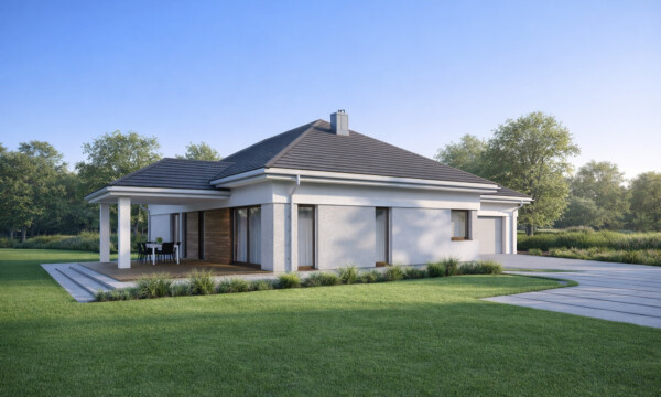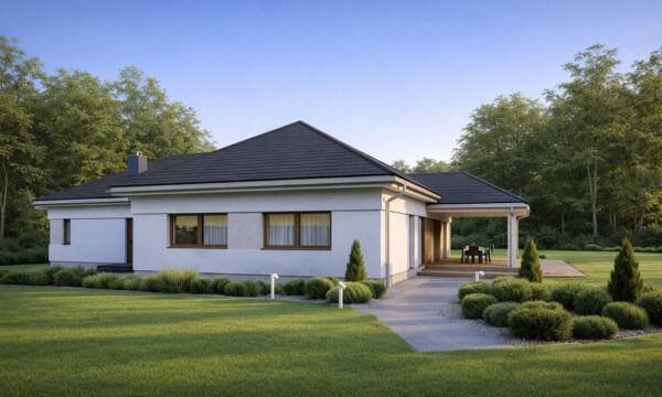 TK78 to bardzo funkcjonalny dom z 3 sypialniami oraz gabinetem z oddzielnym wejściem i sienią. Gabinet ten doskonale sprawdzi się jako niewielki lokal usługowy lub wydzielona strefa gościnna.