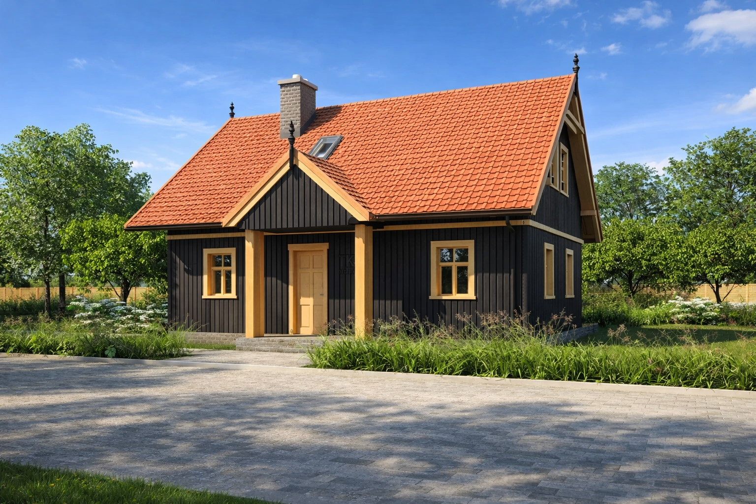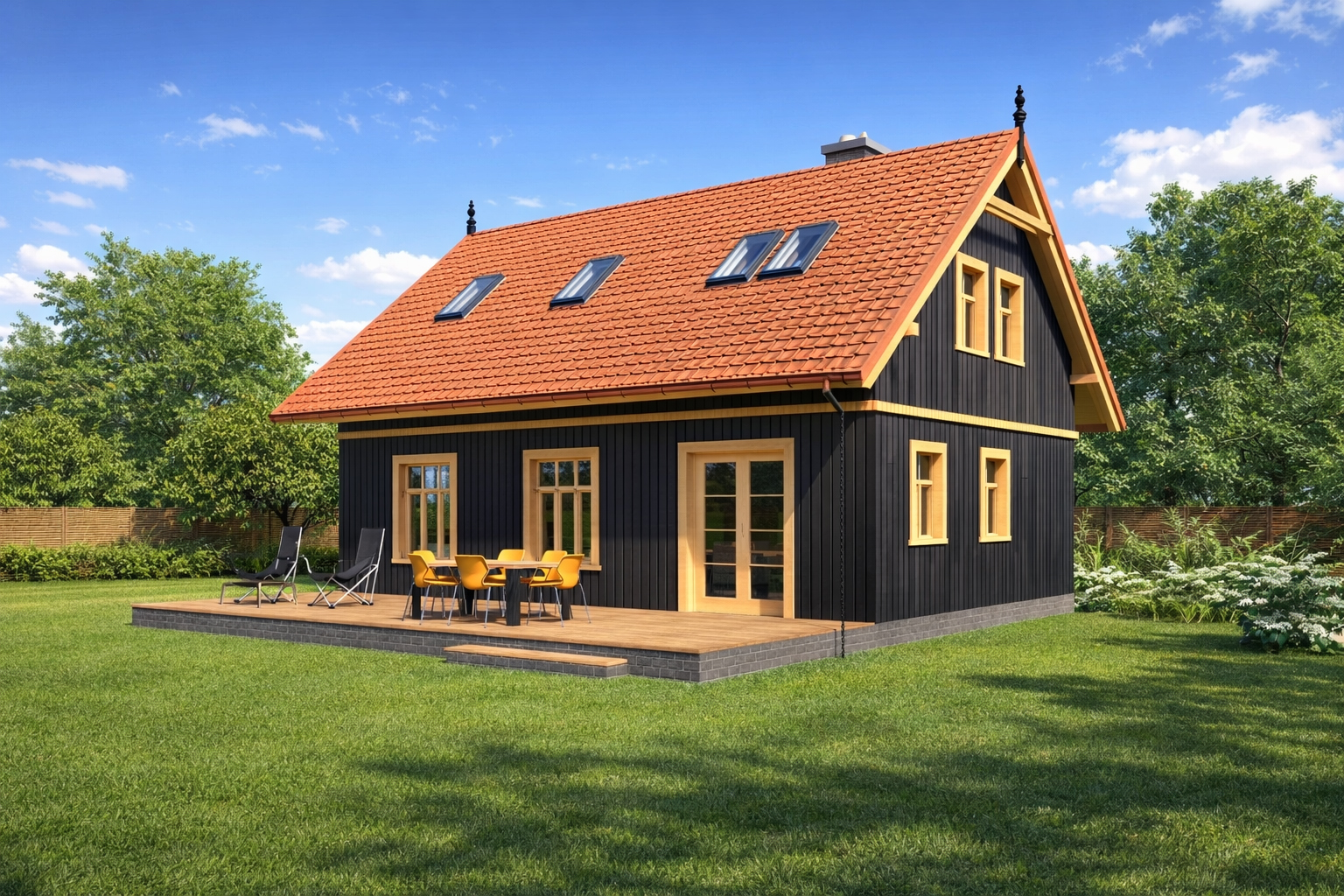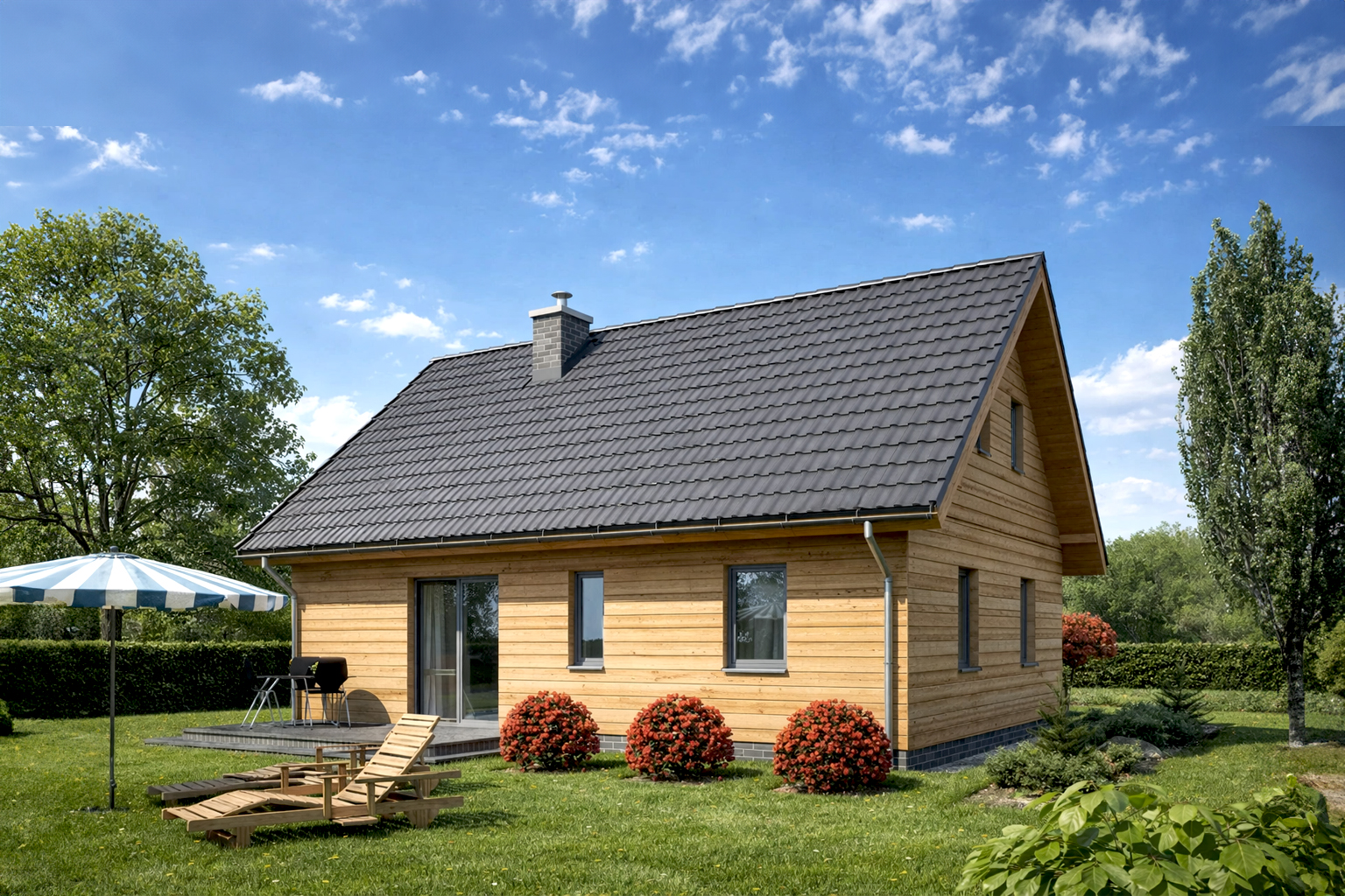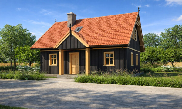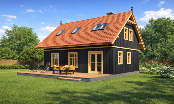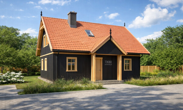 TK80D to mały dom jednorodzinny o powierzchni zabudowy do 70m2 wzorowany na tradycyjnej zabudowie wiejskiej.