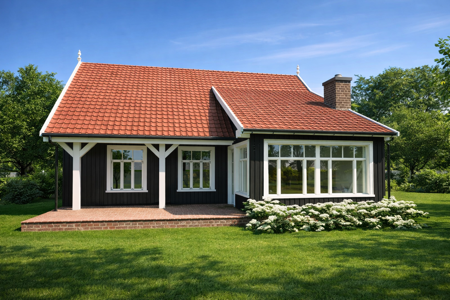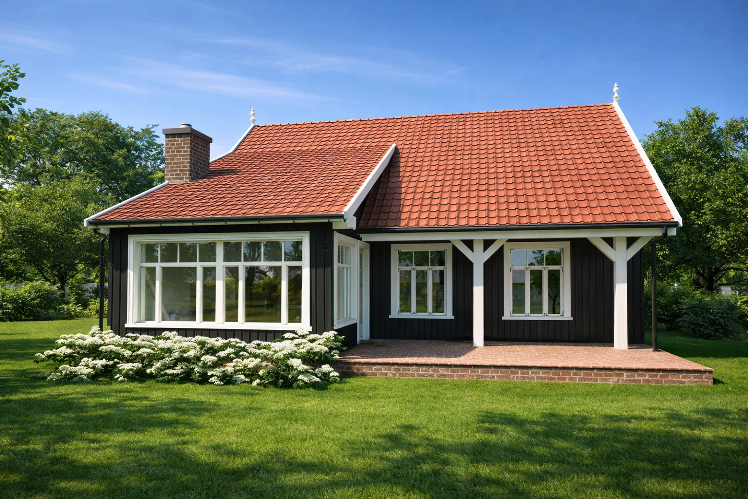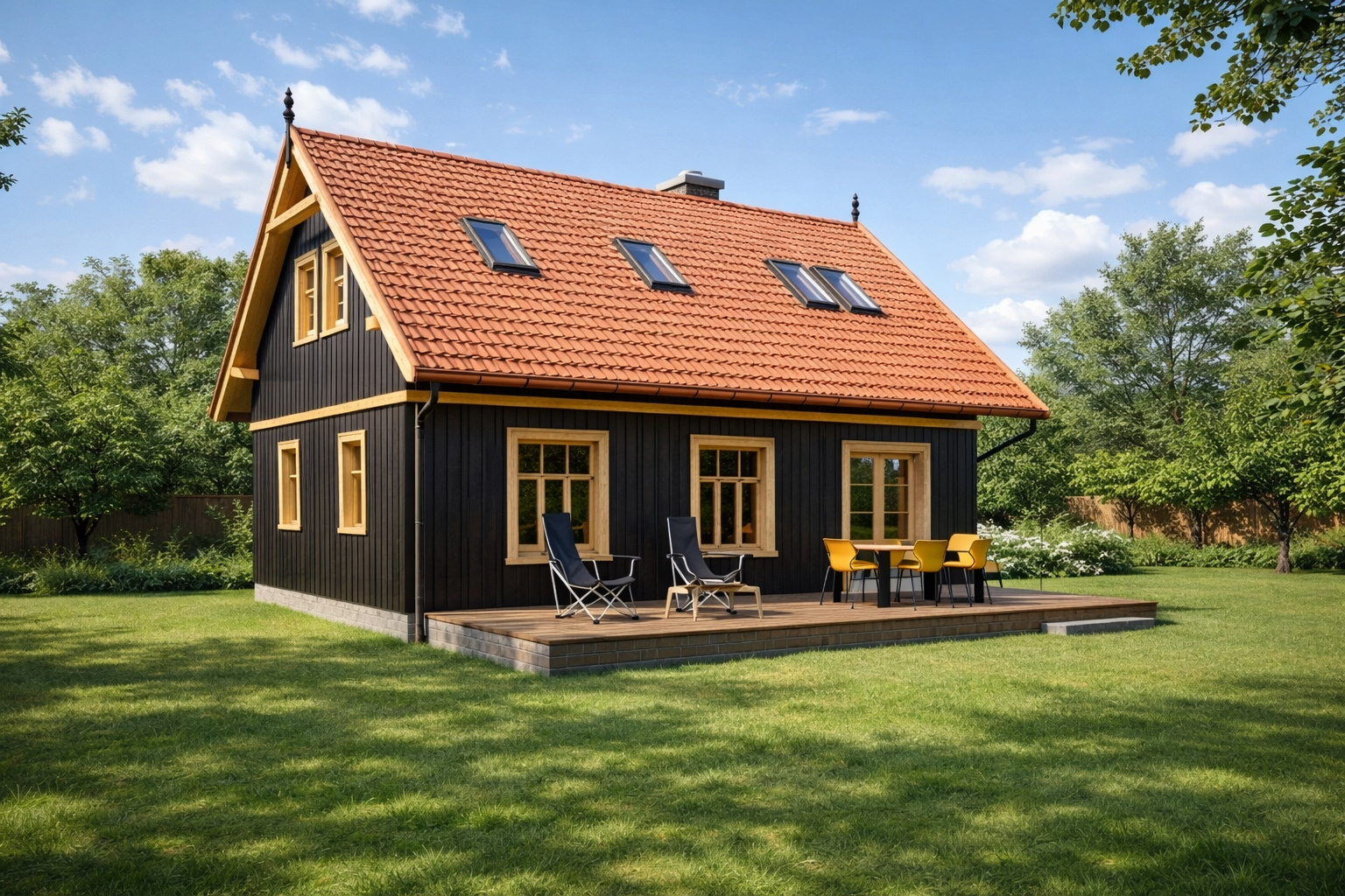 TK80D to mały dom jednorodzinny o powierzchni zabudowy do 70m2 wzorowany na tradycyjnej zabudowie wiejskiej.