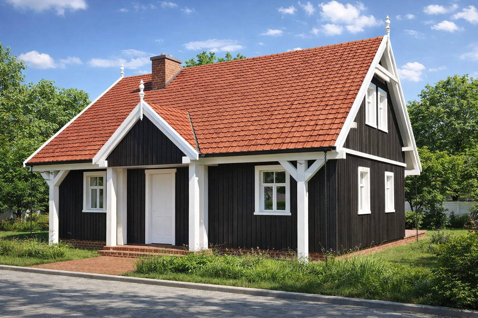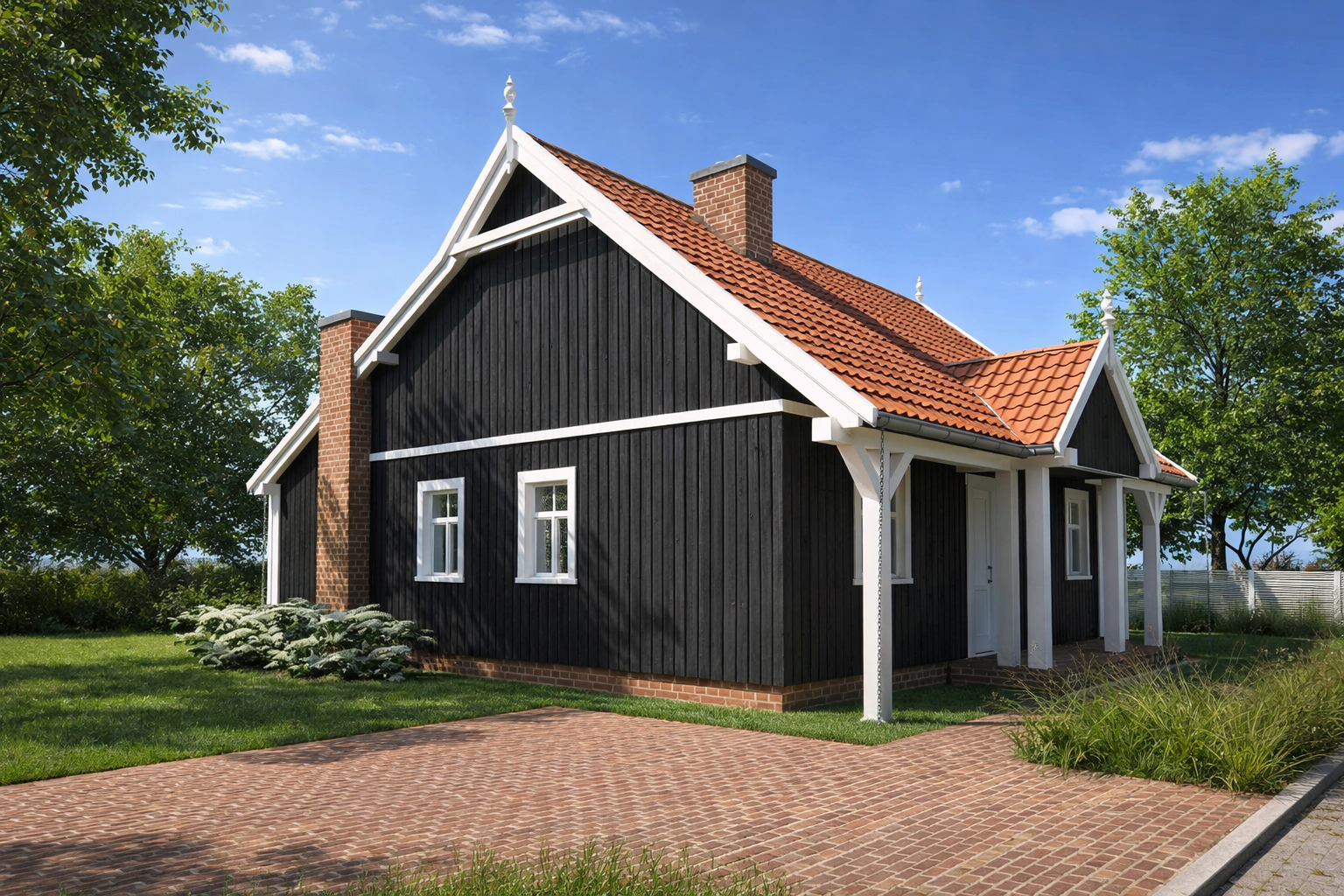 TK81 to mały dom jednorodzinny wzorowany na tradycyjnej zabudowie mazurskiej wsi. Zastosowanie w projekcie najnowszych rozwiązań technicznych i materiałów budowlanych sprawia, że to dom w pełni energooszczędny i łatwy i ekonomiczny w budowie. Otwarta przez dwie kondygnacje strefa dzienna z kominkiem i przeszklony ganek zapewniają wrażenie dużej i naturalnie oświetlonej przestrzeni. Na parterze znajduje się wygodna sypialnia i duża łazienka oraz pomieszczenie gospodarcze. Na poddaszu wykorzystano miejsce na pokój. TK81 może służyć jako letni dom wypoczynkowy.