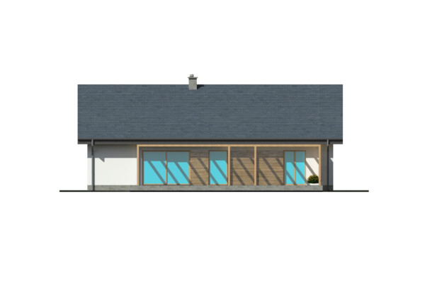 TK85a to projekt domu parterowego o zwartej bryle i funkcjonalnej przestrzeni wewnętrznej. Prosta konstrukcja budynku zapewnia niskie koszty realizacji i użytkowania budynku. W układzie funkcjonalnym domu istnieje wyraźny podział na część dzienną i nocną, dzięki czemu pomimo niewielkiej powierzchni mieszkańcy mogą jednocześnie, swobodnie użytkować każdą z nich. Szeroko otwarta na widok zewnętrzny strefa dzienna łączy w sobie funkcję salonu, jadalni i kuchni. Odpowiednia ilość przeszkleń zapewnia dużą ilość naturalnego światła oraz podnosi walory estetyczne wnętrza. Atutem kuchni w projekcie TK85a jest możliwość wydzielenia lub otwarcia przestrzeni dzięki zastosowanym szerokim drzwiom przesuwnym. Zaprojektowana w drugiej części domu strefa prywatna obejmuje dwa pokoje dla dzieci, sypialnię rodziców z własną łazienką oraz garderobę i łazienkę wspólną. Ponadto wygospodarowano miejsce na pralnię oraz wc dla gości w części dziennej. Pomieszczenie techniczne może służyć jako miejsce dla pompy ciepła i rekuperatora lub stanowić kotłownię na paliwo stałe lub gazowe. TK85a jest domem w konstrukcji murowanej.