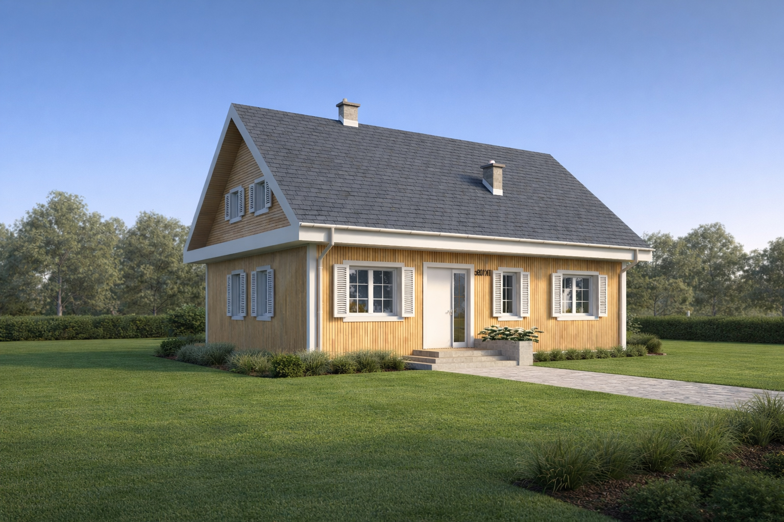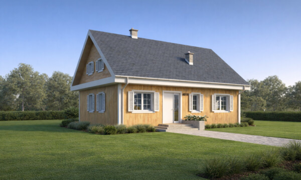 Dom o prostej, zwartej bryle z garażem jednostanowiskowym. Doskonały na działkę z wjazdem od południa jak również od północy. Ekonomiczny w budowie oraz późniejszym użytkowaniu. Niezwykle funkcjonalny. Na parterze wydzielono część dzienną z przestronnym salonem połączonym z jadalnią oraz dodatkowy pokój np. na gabinet, pokój gościnny.