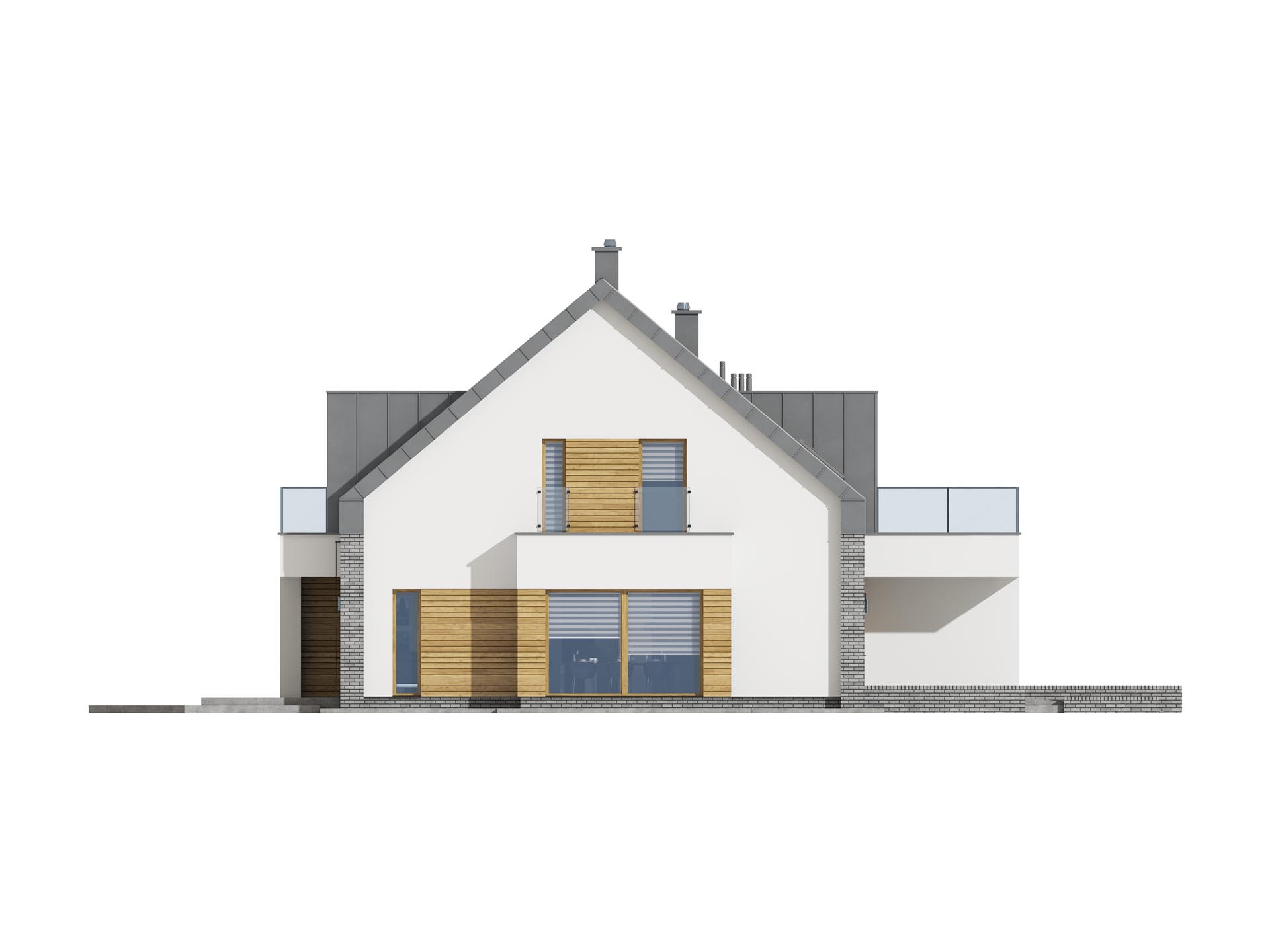 Nowoczesny dom w zabudowie bliźniaczej oferujący atrakcyjne i funkcjonalne wnętrza. Na parterze przestronna przestrzeń dzienna z kominkiem w jadalni, wygodny gabinet i obszerny garaż na jeden samochód. Na poddaszu skosy ograniczone są do minimum dzięki dużym i przeszklonym lukarnom, które zapewniają doskonałe oświetlenie. Liczne tarasy pozwolą domownikom cieszyć się otaczającą naturą.