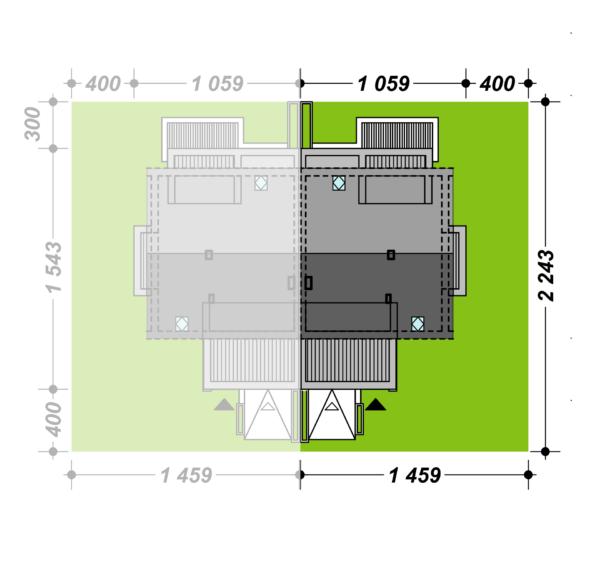 Projekt dostępny w wersji zabudowy bliźniaczej i jako budynek jednorodzinny dwulokalowy TK90D2, a także w wersji zabudowy szeregowej TK90S.