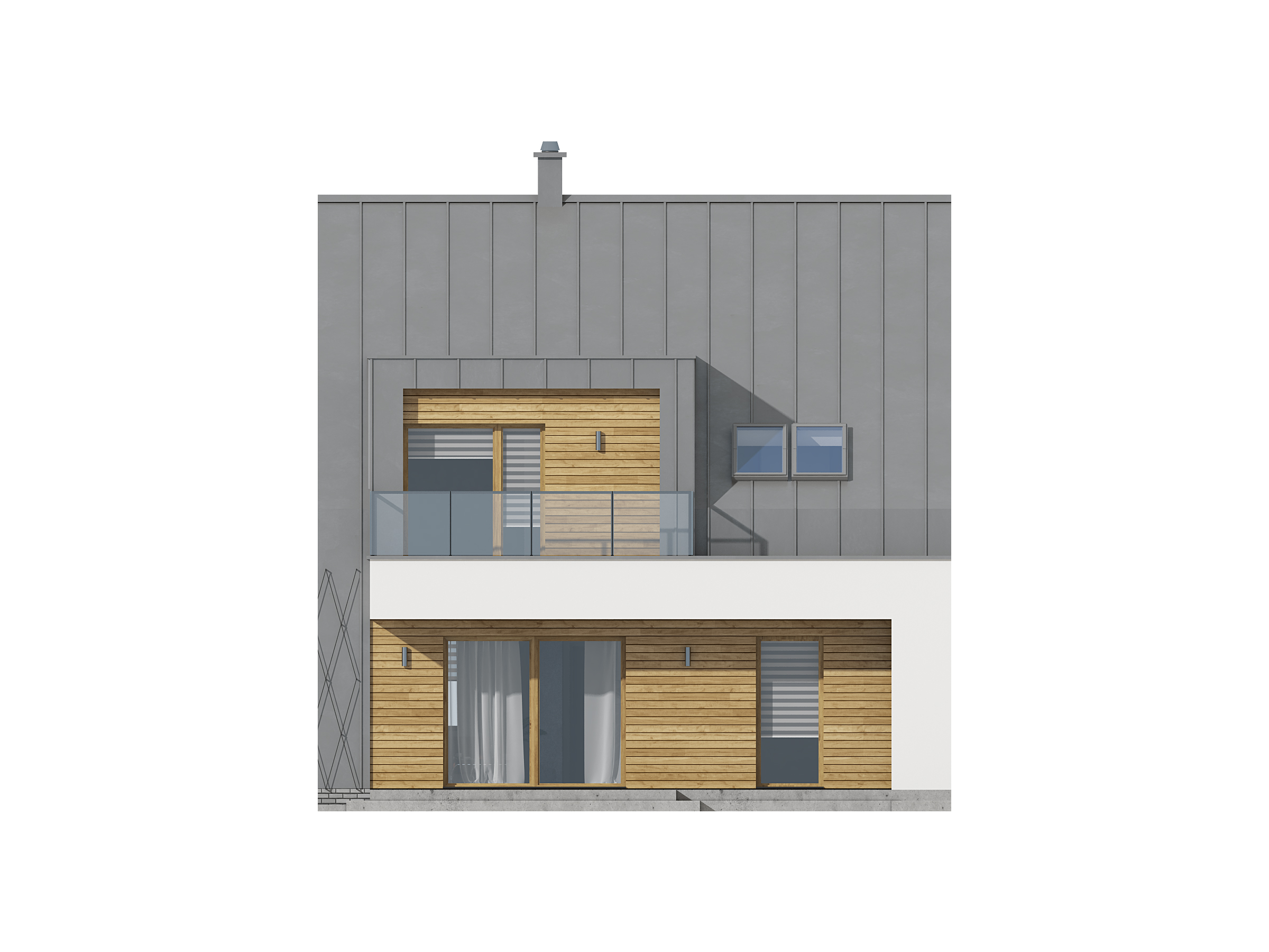 Nowoczesny dom w zabudowie szeregowej oferujący atrakcyjne i funkcjonalne wnętrza. Na parterze przestronna przestrzeń dzienna z kominkiem w jadalni, wygodny gabinet i obszerny garaż na jeden samochód. Na poddaszu skosy ograniczone są do minimum dzięki dużym i przeszklonym lukarnom, które zapewniają doskonałe oświetlenie. Liczne tarasy pozwolą domownikom cieszyć się otaczająca naturą.